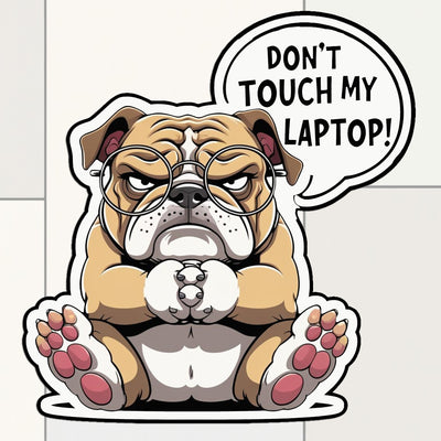 Grumpy Bulldog “Don’t Touch My Laptop” Sticker