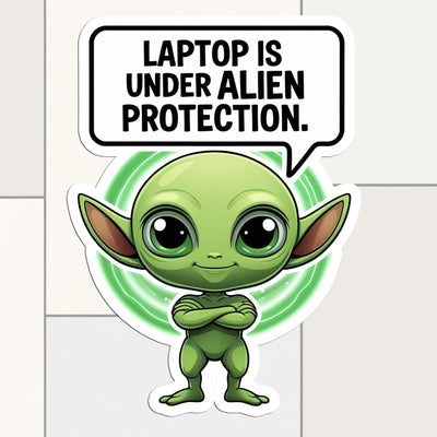 Laptop Is Under Alien Protection – Cute Alien Vinyl Sticker