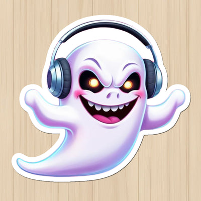 Groovy Ghost Sticker – Spooky Cool with Headphones