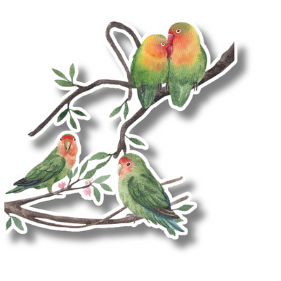 Watercolor Lovebirds Sticker – Romantic Parrots on Tree Branch | Water-Resistant