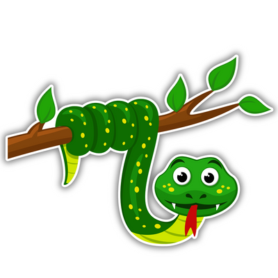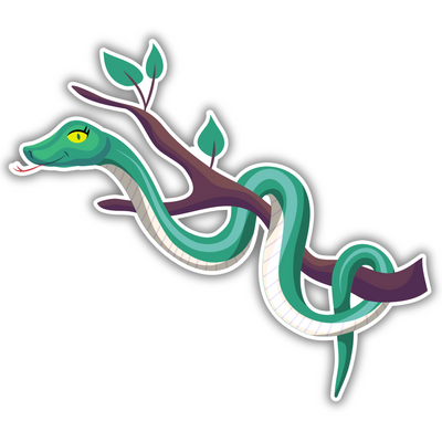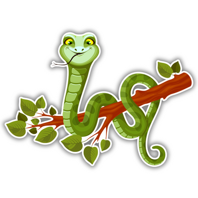 Hanging Snake on Branch – Cartoon Vinyl Sticker | Jungle-Themed Reptile Decal