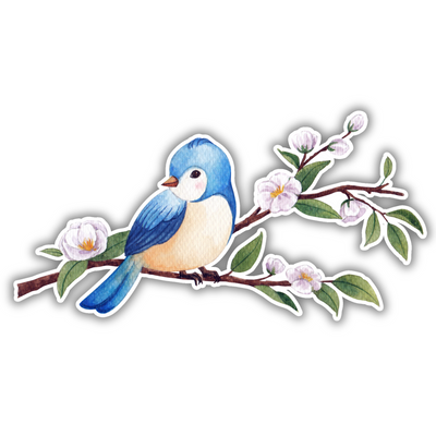 Bluebird on Flower Branch – Cute Vinyl Sticker | Nature-Inspired Decorative Decal