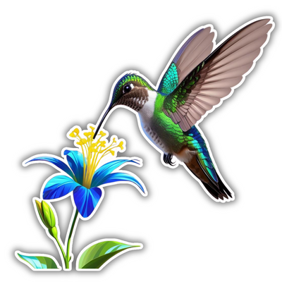 Hummingbird with Blue Flower – Nature-Inspired Vinyl Sticker | Realistic Floral & Bird Decal