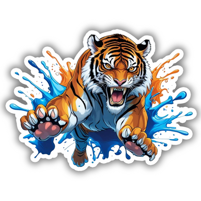 Splash Pounce Tiger – Fierce Vinyl Sticker | 3D Wild Jungle Attack