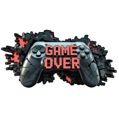 Game Over Controller Sticker – 3D Cracked Joystick Design | Water-Resistant Viny
