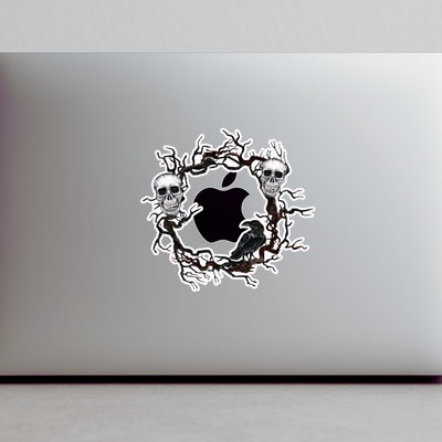Skull & Raven Laptop Logo Sticker – Gothic Frame Design with Skulls & Branches | Water-Resistant Vinyl