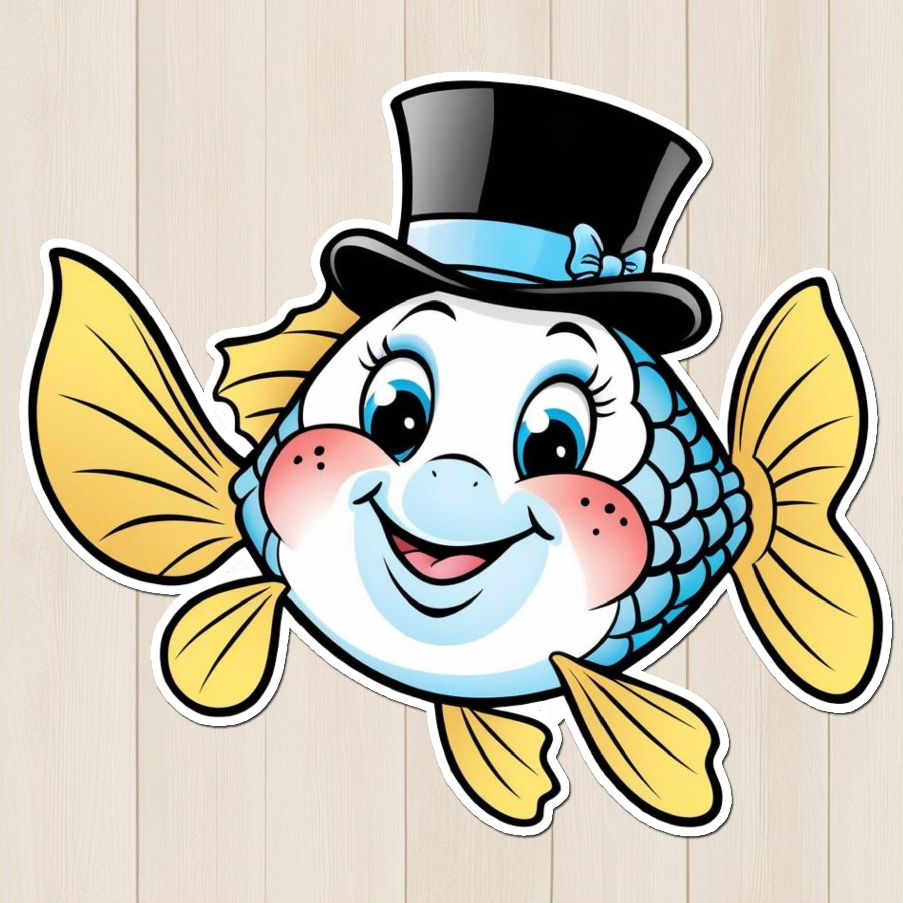 Bring a splash of charm to your belongings with this hilarious Dapper Fish Sticker, featuring a happy cartoon fish with blushing cheeks, a stylish black top hat, and bright yellow fins. It’s the perfect mix of quirky and adorable — ideal for those who love funny aquatic designs or playful animal characters.
