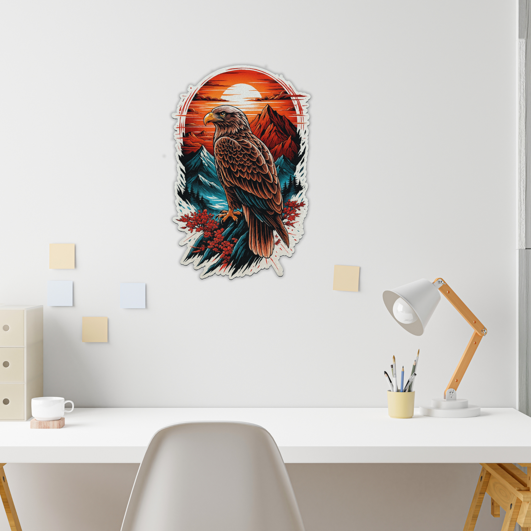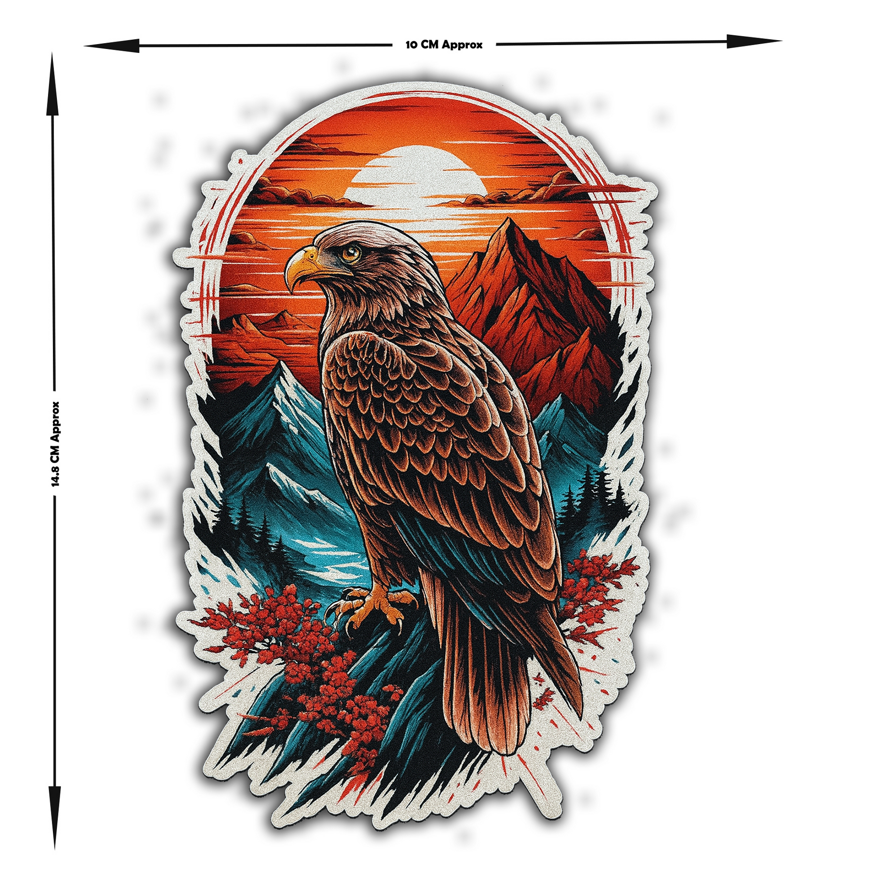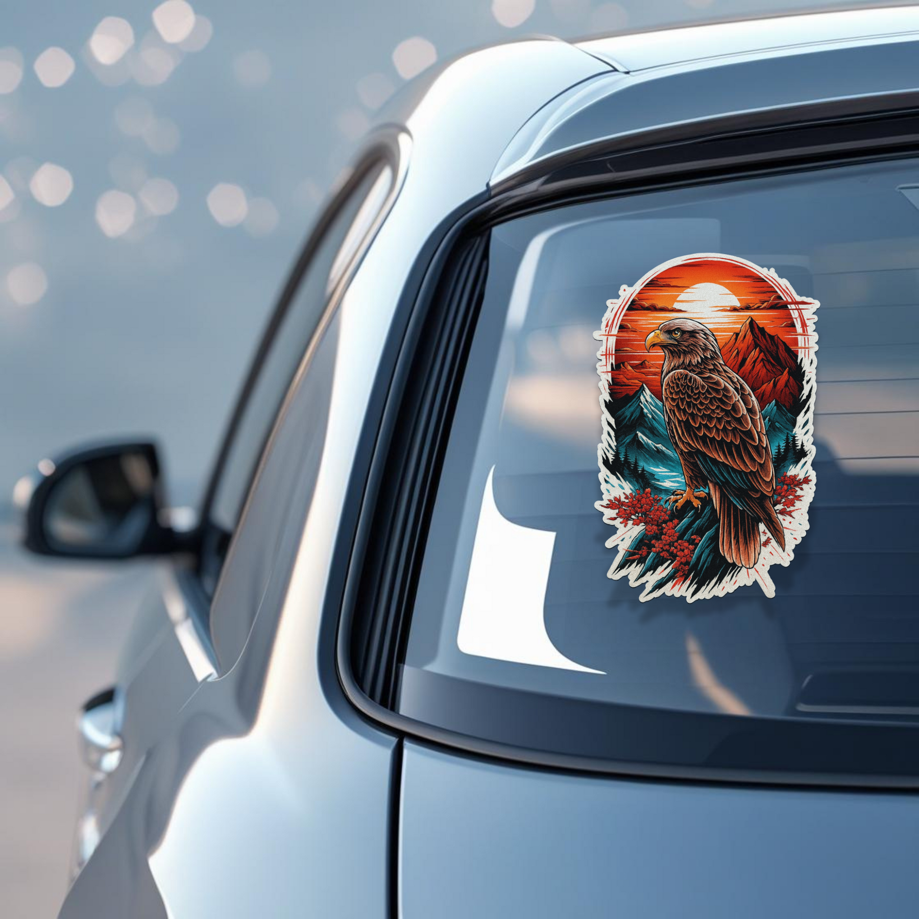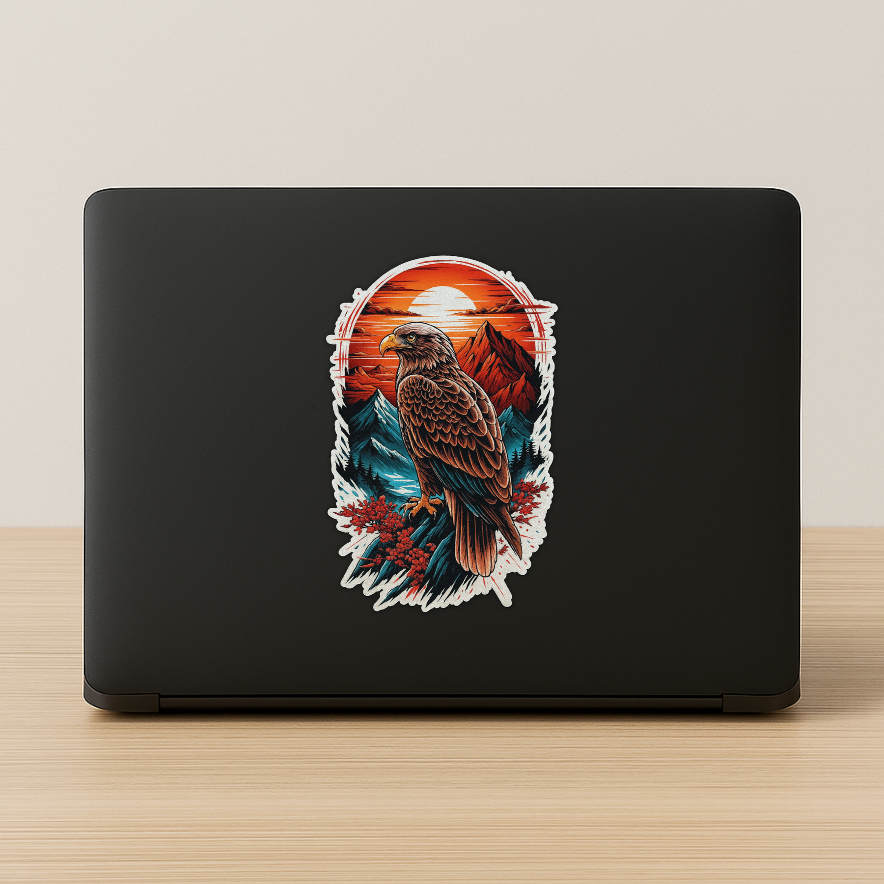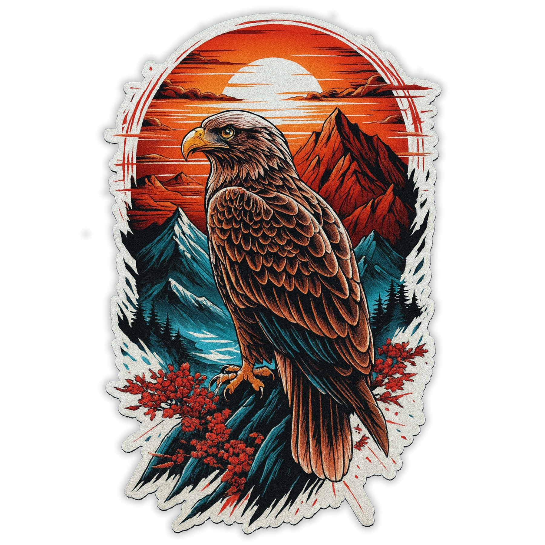Unleash bold wilderness vibes with this majestic eagle sticker, perched against a dramatic mountain range and sunset backdrop. With vivid details and rich contrast, it’s perfect for adventurers and nature lovers. Use this waterproof vinyl sticker on laptops, bikes, bottles, journals, or your favorite gear for a wild, fearless touch.