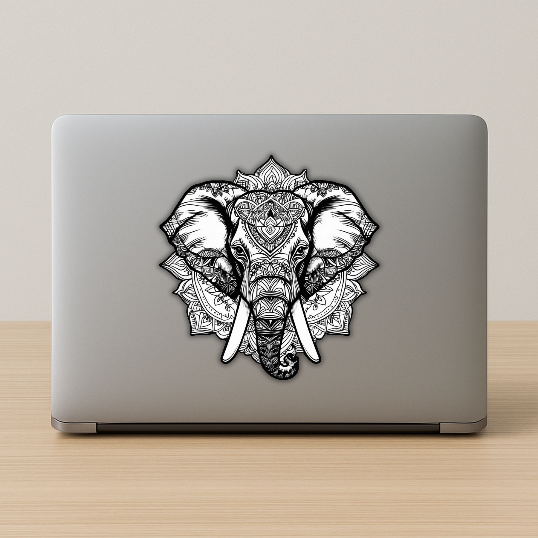 Channel strength, wisdom, and ancient elegance with this Elephant Mandala sticker, illustrated in stunning black-and-white tribal line art. With intricate sacred patterns blending seamlessly into the majestic elephant’s face, this design is perfect for bold décor, yoga accessories, or statement laptop art.