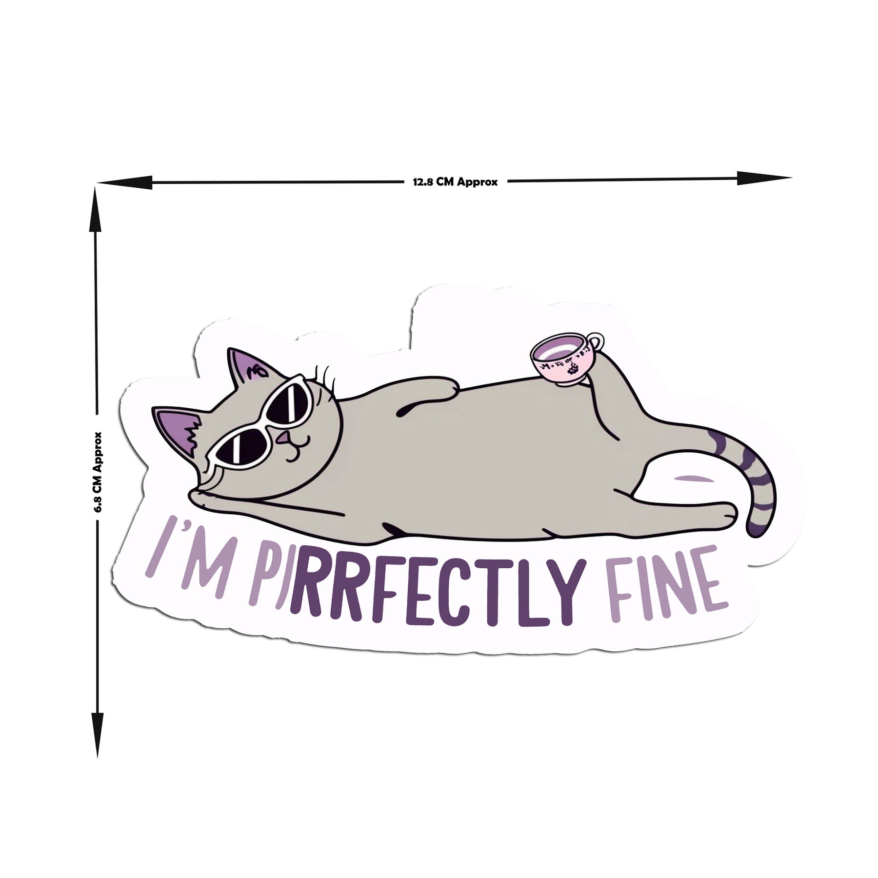 Add a dose of sass to your day with this “I'm Purrfectly Fine” vinyl sticker featuring a relaxed cartoon cat lounging with cool shades and a cup of tea. It’s the ultimate vibe sticker for cat lovers, self-care fans, or anyone embracing that chill life.