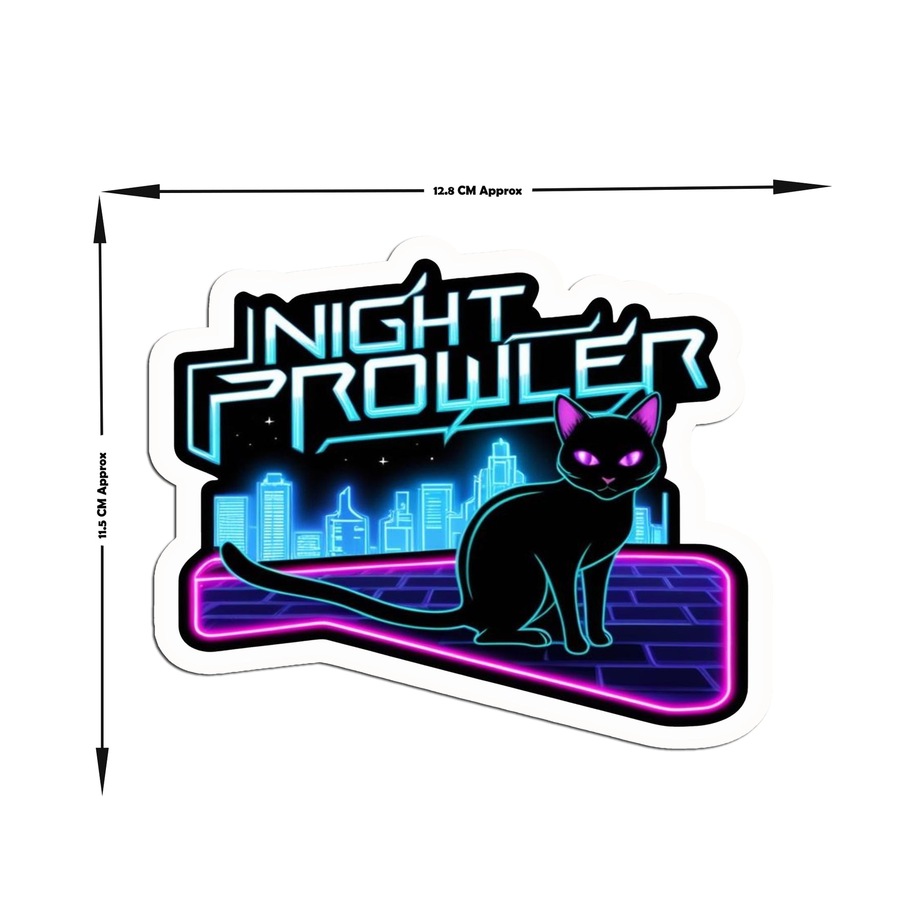 Step into the neon night with the Night Prowler sticker! Featuring a futuristic black cat with glowing eyes and a retro cyberpunk skyline, this design brings serious 80s vaporwave vibes. Perfect for cat lovers, night owls, and aesthetic freaks who love that bold, edgy look.