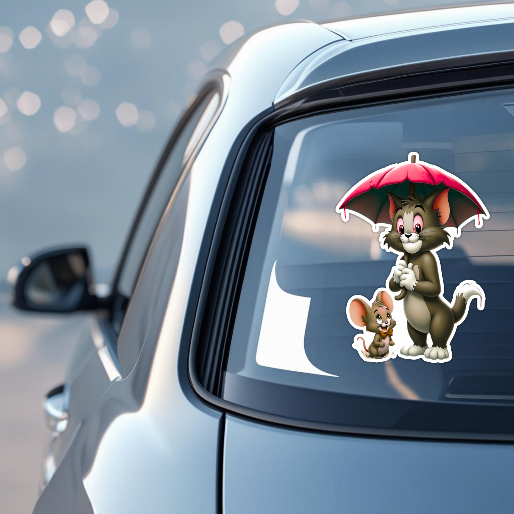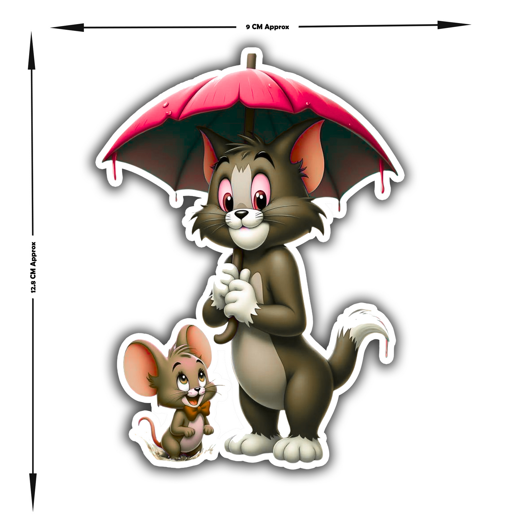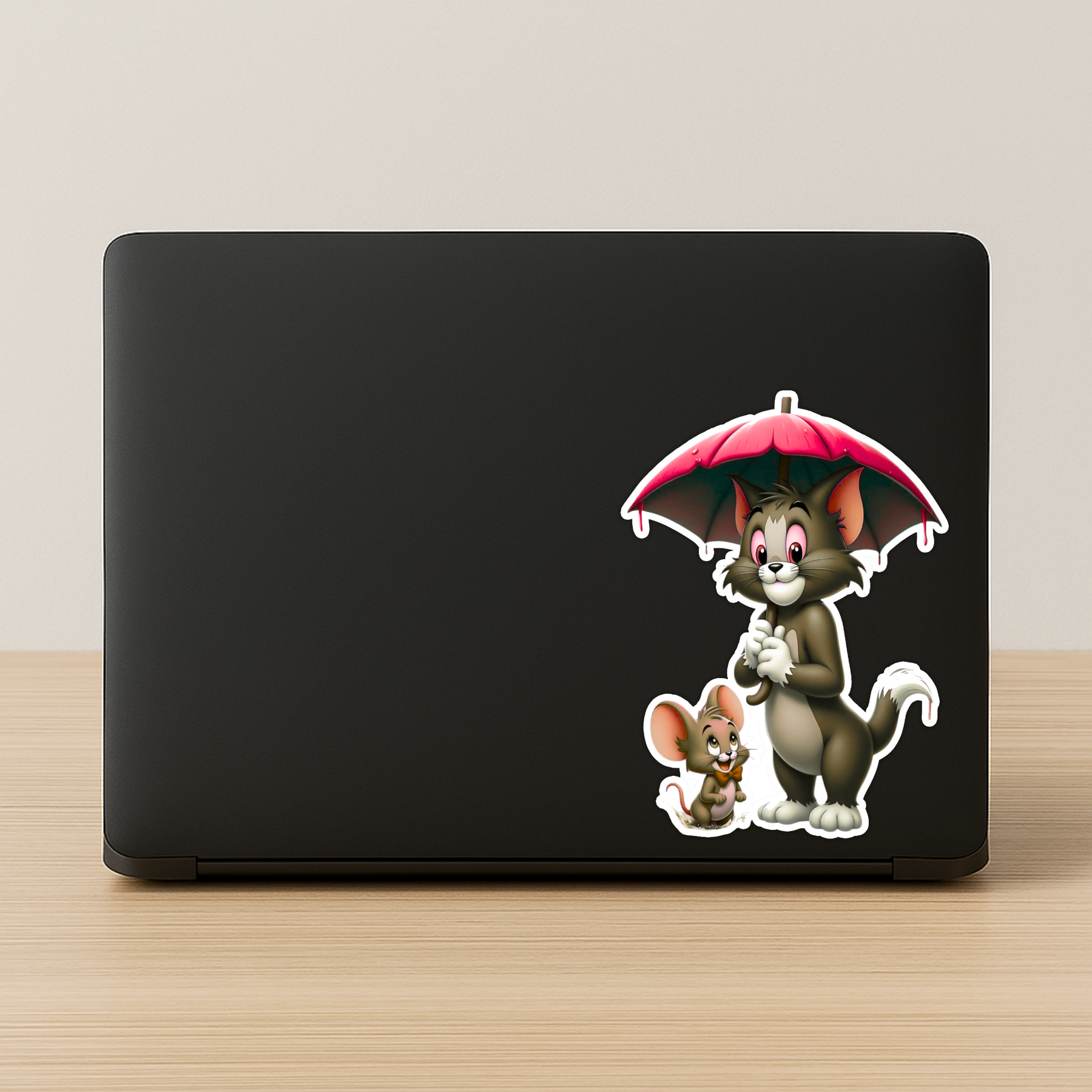 Bring nostalgic joy and heartwarming friendship vibes with this adorable waterproof sticker featuring Tom holding an umbrella for Jerry. A perfect pick for laptops, phone cases, bottles, notebooks, or car windows — this vinyl sticker adds a sweet touch of classic cartoon love wherever you place it.