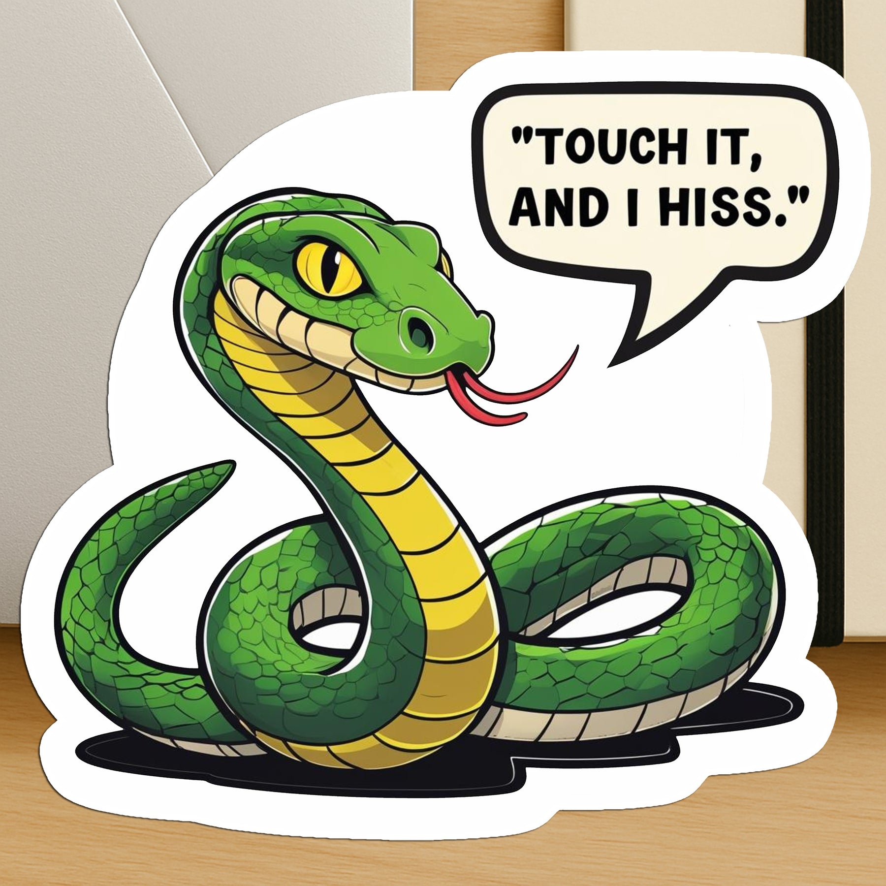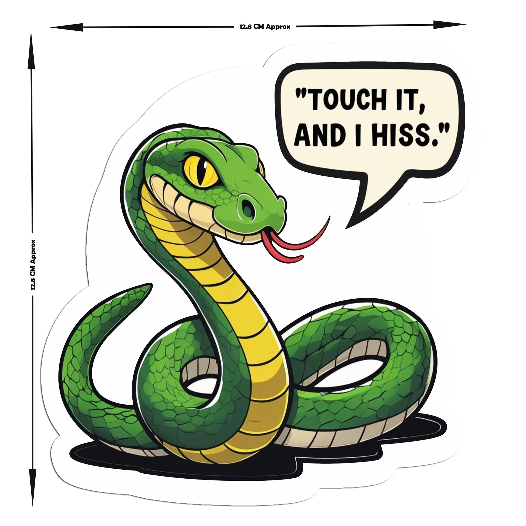 Add playful danger to your gadgets with this smirking green snake sticker, boldly saying “Touch it, and I hiss.” It’s cheeky, clever, and perfect for people who love keeping their tech off-limits. Made from high-quality waterproof vinyl, this sticker combines humor with subtle attitude – a fun way to claim your space on laptops, or notebooks.