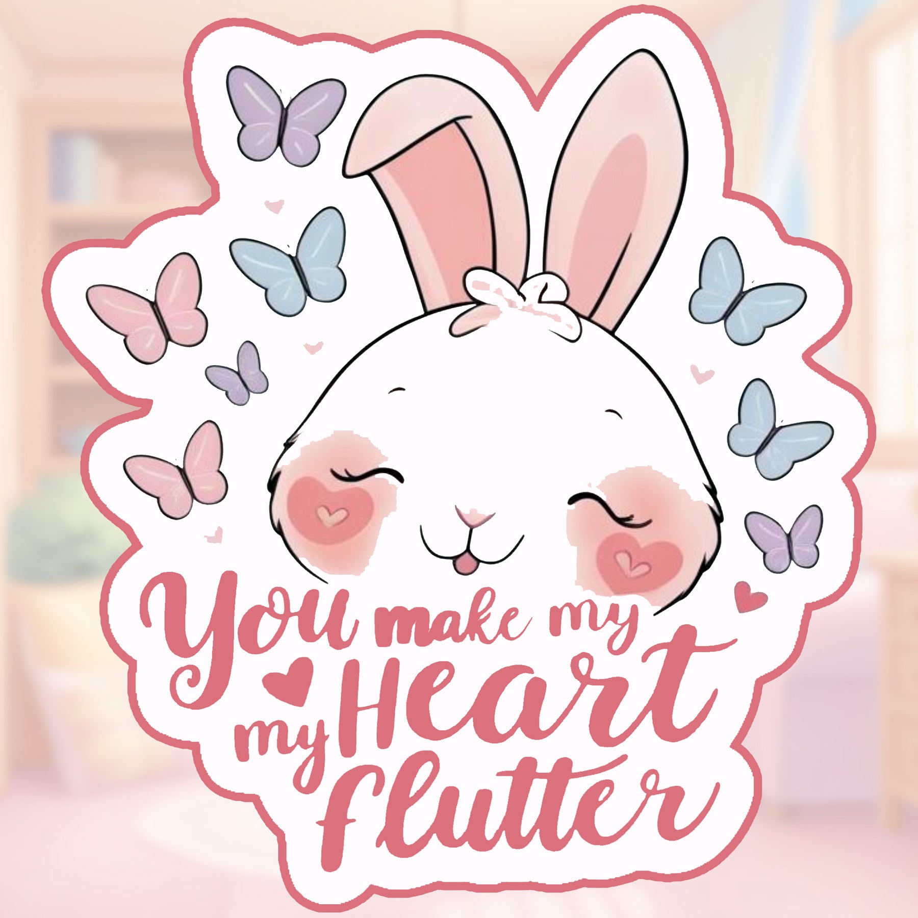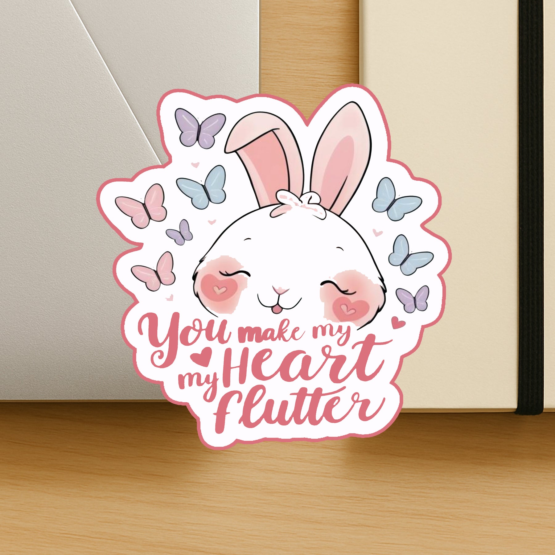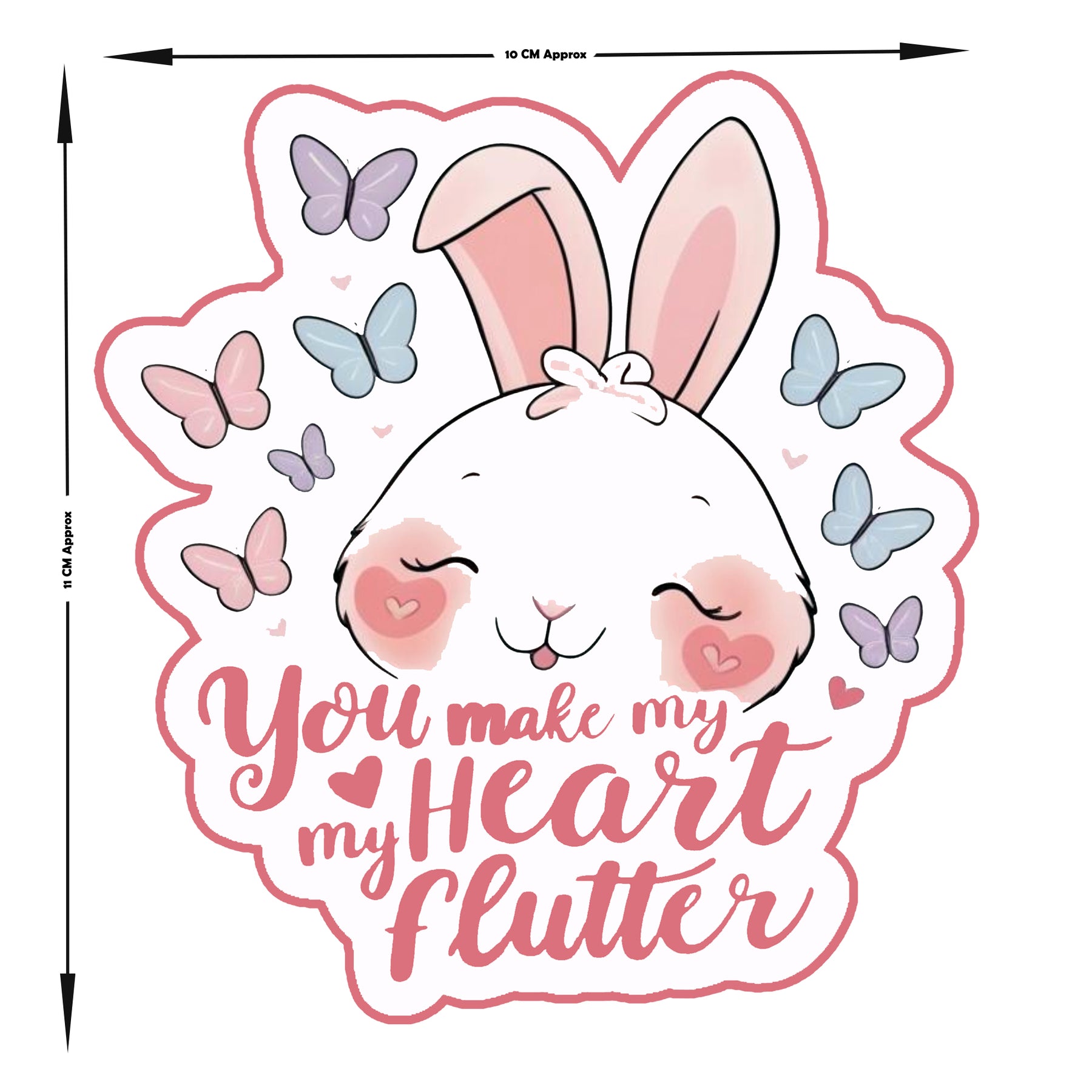 Fall in love at first sight with our You Make My Heart Flutter Bunny Sticker, a heartwarming design featuring a blushing bunny surrounded by pastel butterflies and cute handwritten typography. Perfect for gifting to someone special, decorating journals, scrapbooks, laptops, notebooks, or wardrobe. This sticker is made with premium waterproof vinyl and a soft glossy finish that’s scratch-resistant, peel-friendly, and long-lasting. Whether it’s for a couple, best friend, or someone you adore, this sticker is a sweet little reminder that love is in the details.