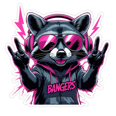 Bangers Raccoon DJ Sticker – Cool Waterproof Cartoon Vinyl | Funky Decor