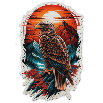 Eagle in Mountain Sunset – Waterproof Vinyl Sticker | Wildlife Adventure Art