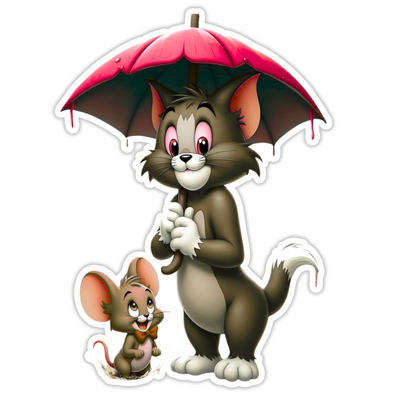 Tom & Jerry Umbrella Sticker – Cute Waterproof Cartoon Vinyl | Friendship Sticker