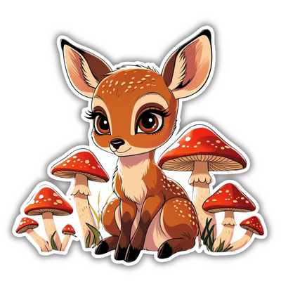 Cute Deer with Mushrooms – Water-Resistant Sticker | Cottagecore Forest Aesthetic