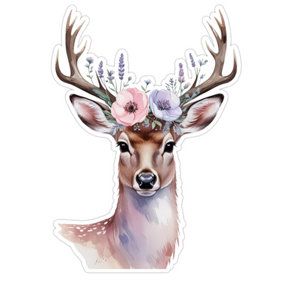 Floral Crown Deer – Water-Resistant Sticker | Elegant Nature Aesthetic