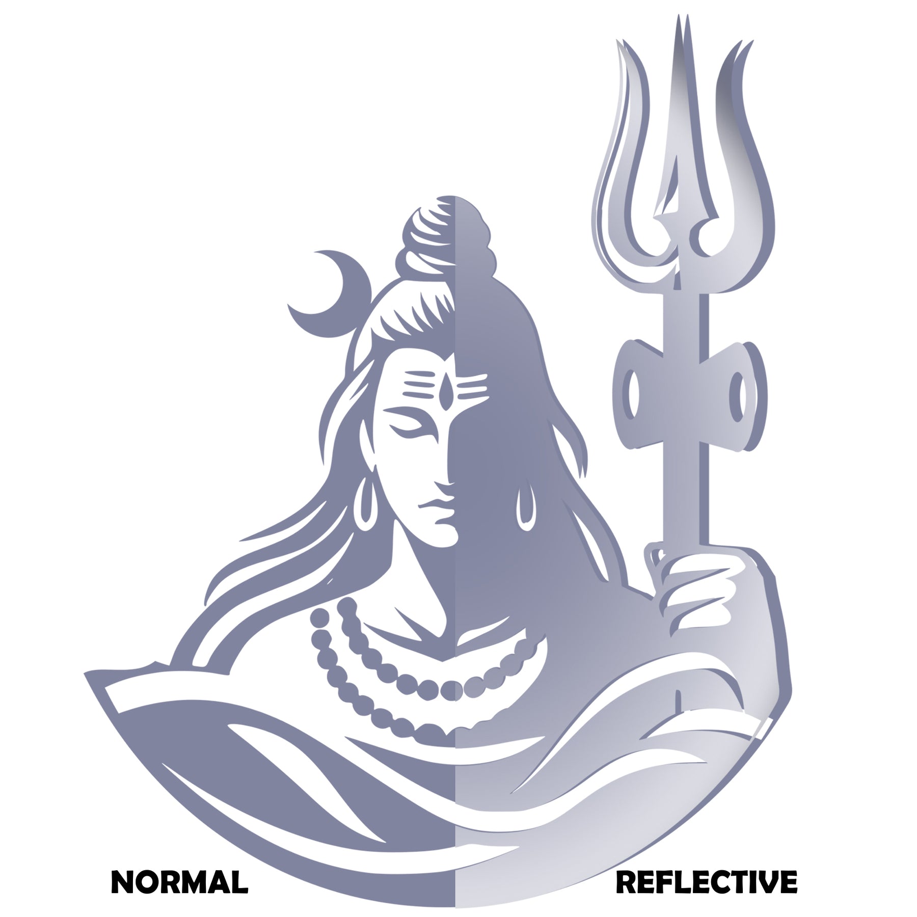Crafted in reflective vinyl, this design glows beautifully when light hits it — adding a spiritual shine to your pooja room, meditation zone, or sacred wall. The crescent moon and beads enhance the connection with Mahadev’s calm yet powerful presence.