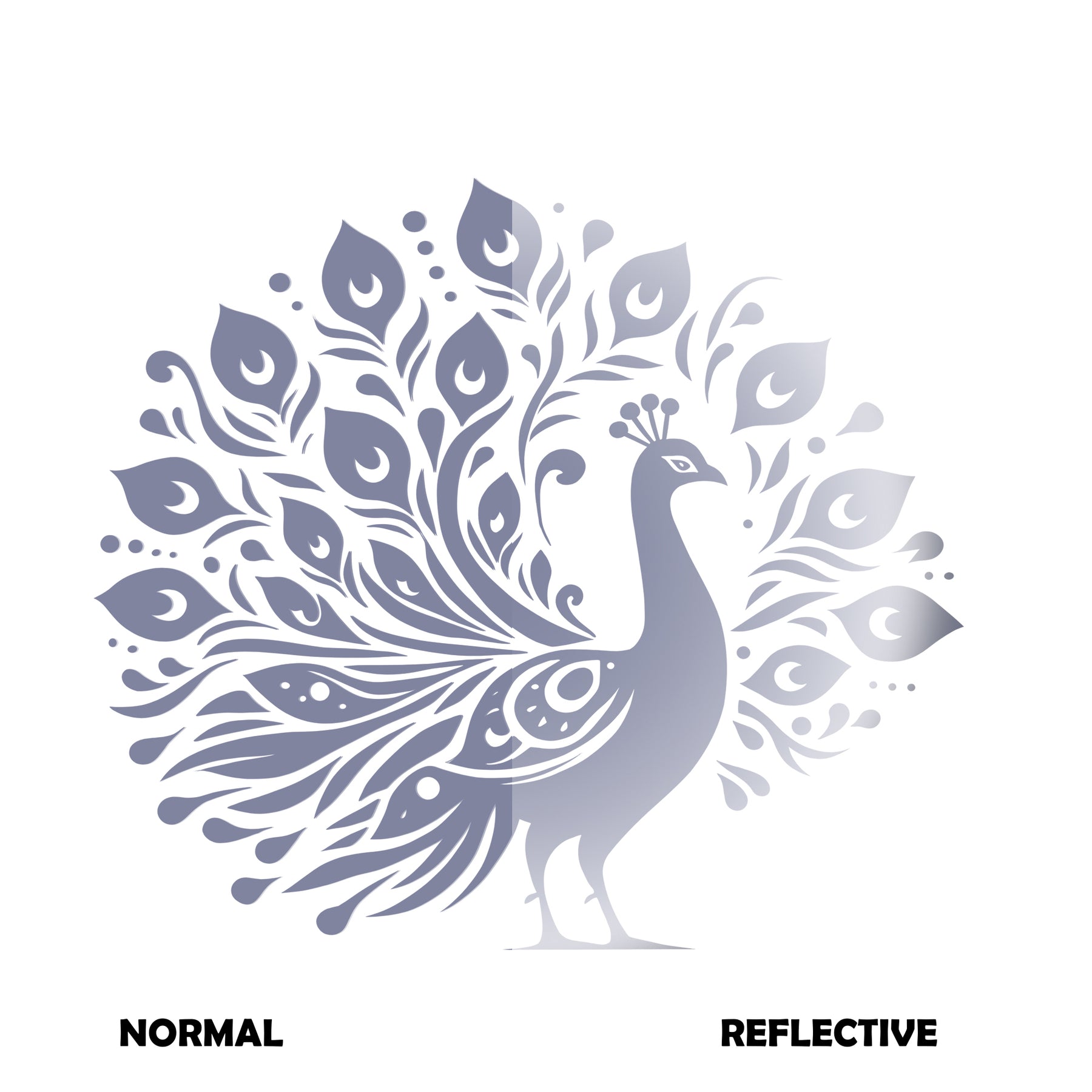 Add a splash of royalty and tradition to your home with this Royal Peacock reflective wall frame. Featuring mandala-style feather detailing and crafted in reflective vinyl, this design glows beautifully when light hits — offering an elegant glow both day and night.