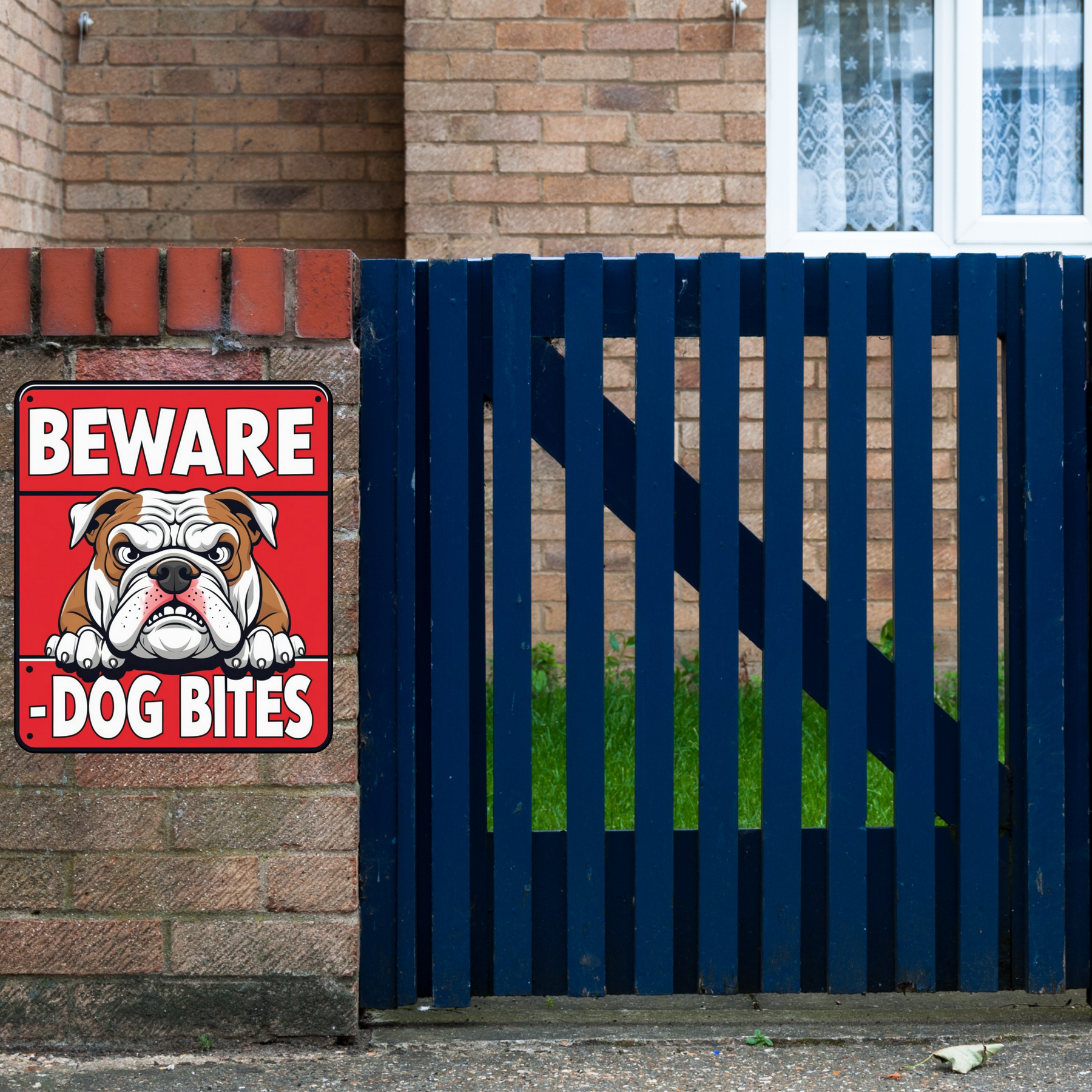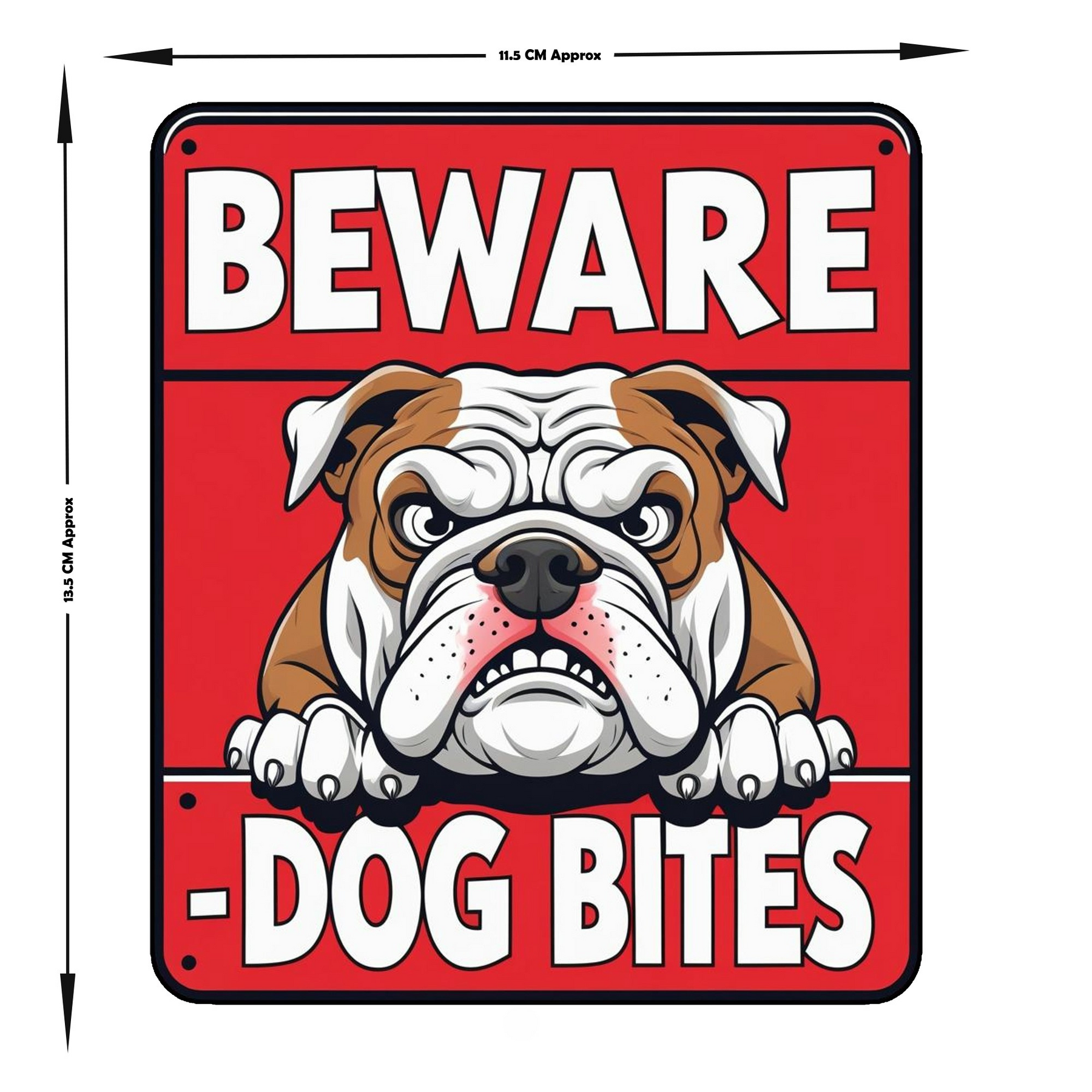 Warn visitors and trespassers with the STIXY™ “Beware – Dog Bites” Bulldog Warning Sticker. Featuring a fierce cartoon bulldog and bold red background, this sticker sends a clear message before anyone steps too close.