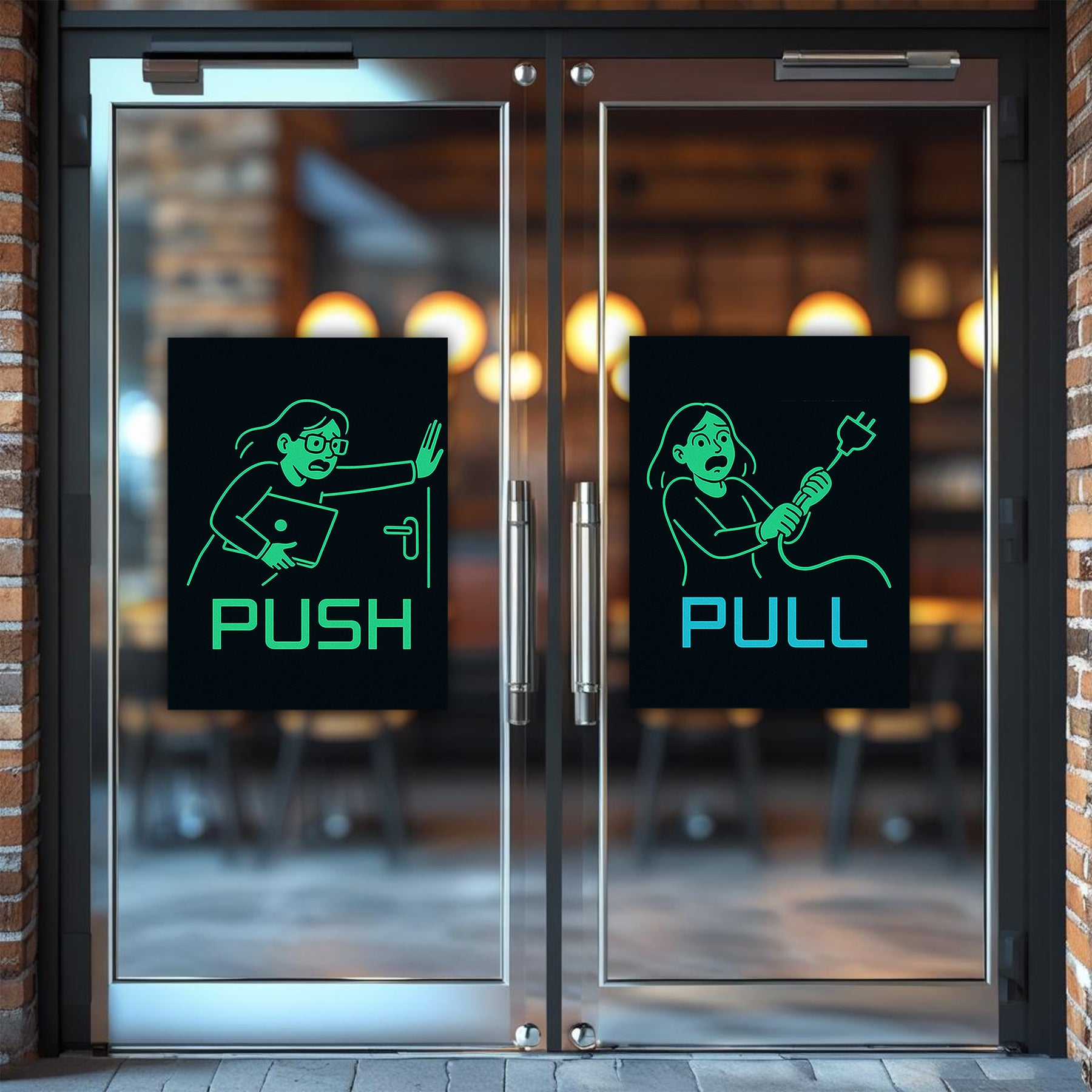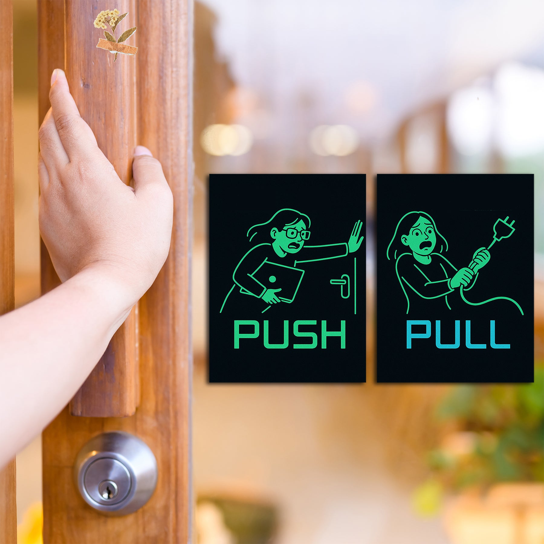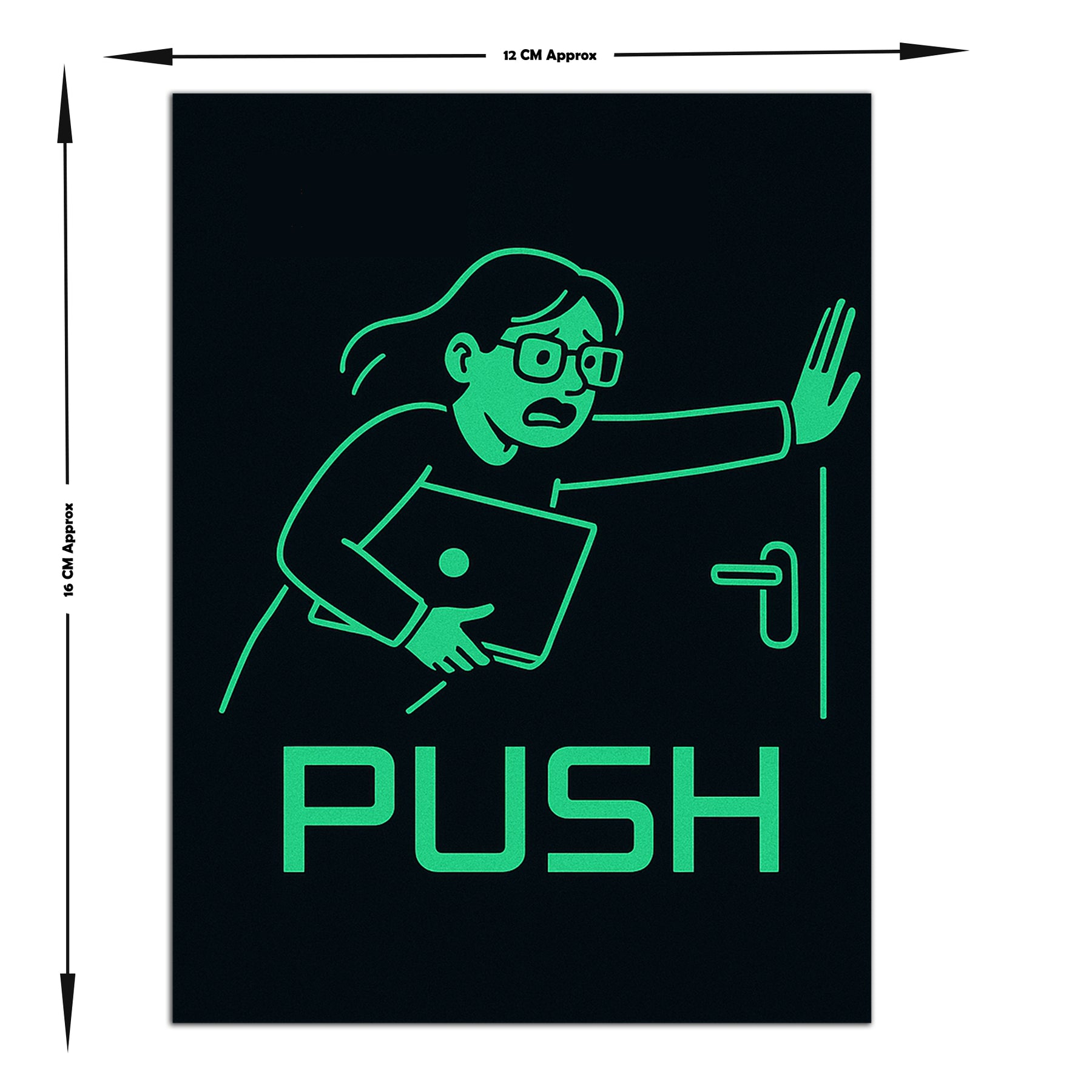 Add humor to your doors with this Funny Office Push & Pull Sticker Set featuring a cartoon lady caught in two hilarious moments — pushing a locked door and pulling a stubborn plug. Made with waterproof vinyl, this sticker set is ideal for office doors, creative studios, or home workspaces where a little fun goes a long way. Clean-cut, professional yet playful – these stickers are sure to grab attention and smiles.