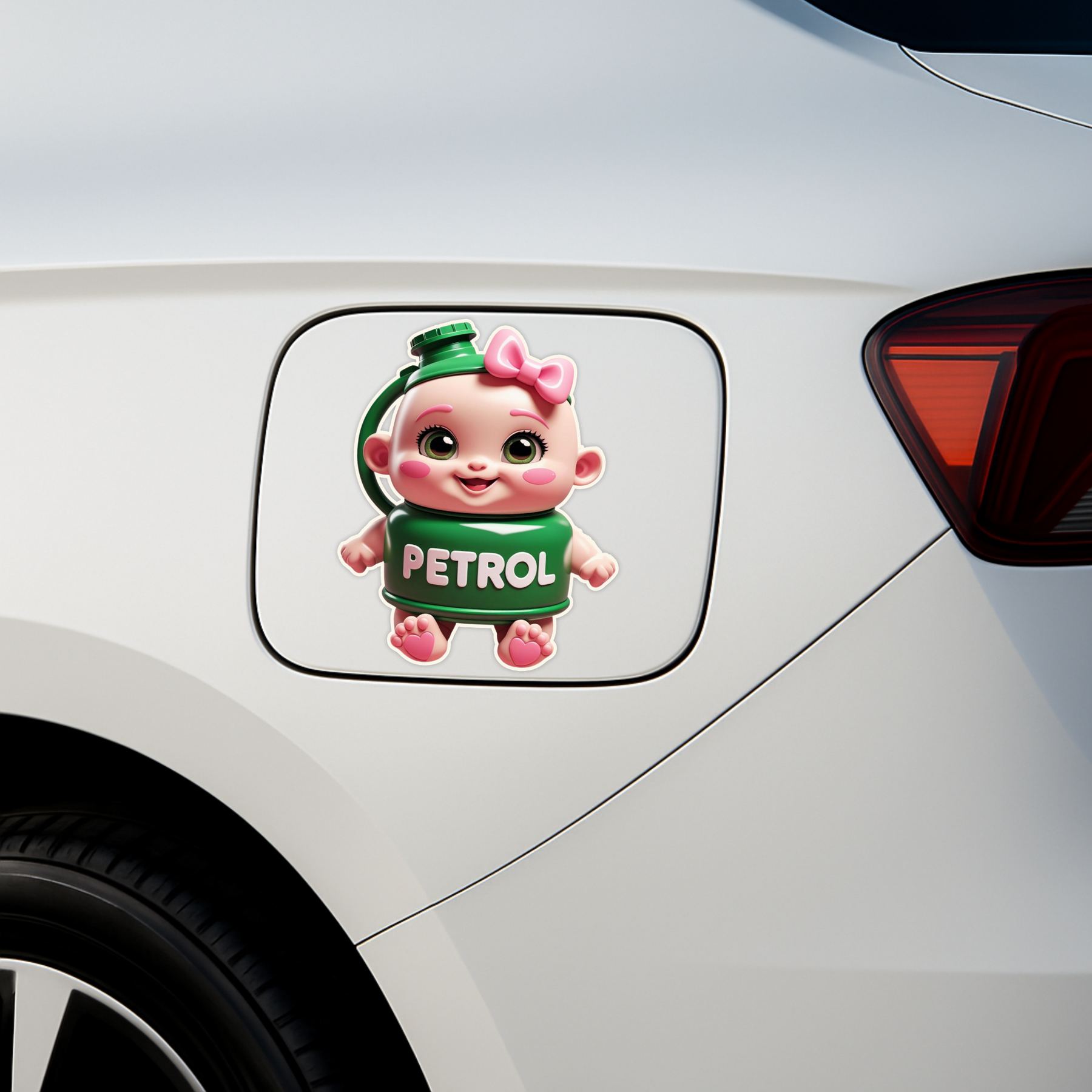Turn heads and fuel some fun with the STIXY™ Petrol Baby Girl Sticker! This adorable waterproof vinyl features a cute baby girl with a green petrol can body and pink bow – a perfect blend of humor and charm. Designed specifically for car and bike fuel lids, this sticker adds personality and smiles wherever you drive. Built with waterproof material, it sticks firmly through all weather and washes.