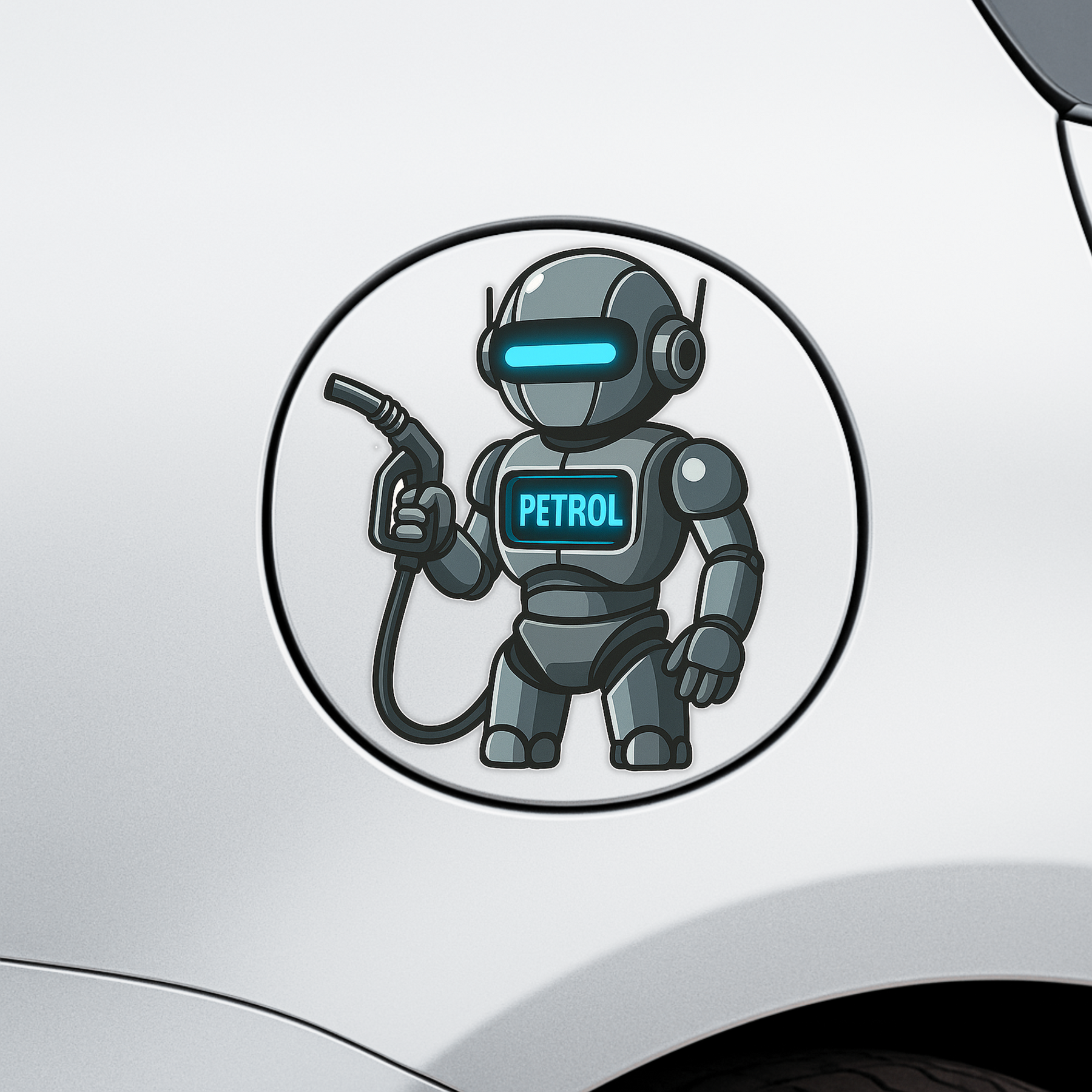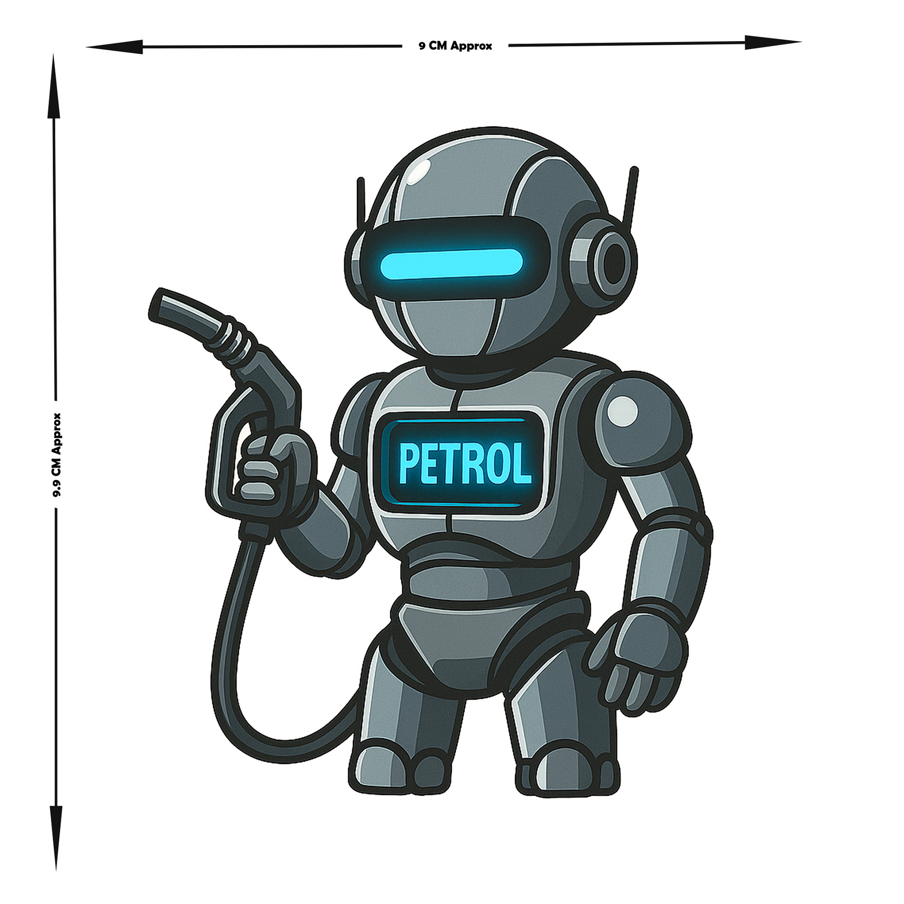 Add a futuristic twist to your ride with the STIXY™ Robot Petrol Fuel Sticker – a unique waterproof vinyl decal featuring a high-tech robot holding a fuel pump marked “PETROL.” Perfect for fuel lids, tank caps, helmets, or toolboxes, this sticker adds humor and a smart-tech vibe to your vehicle.