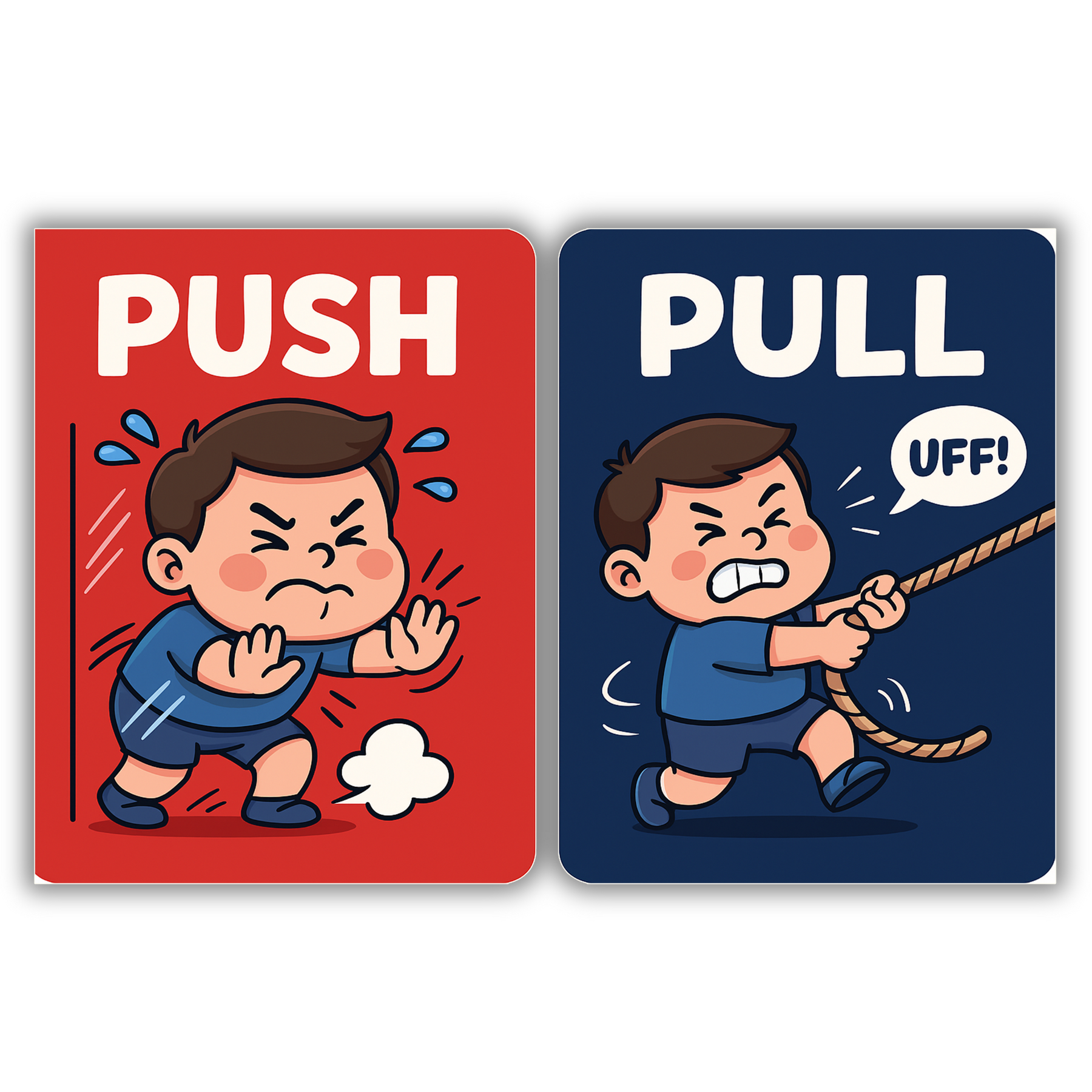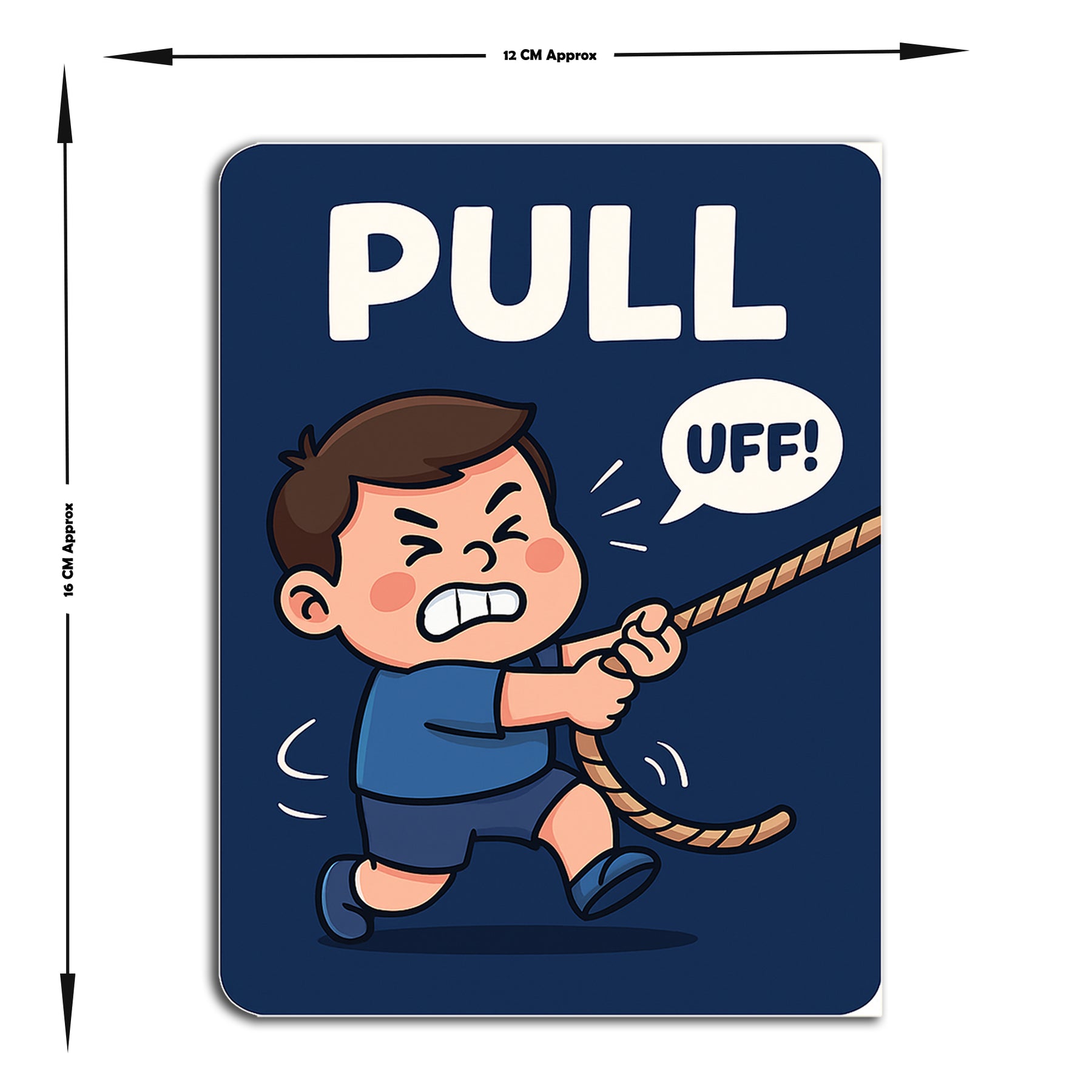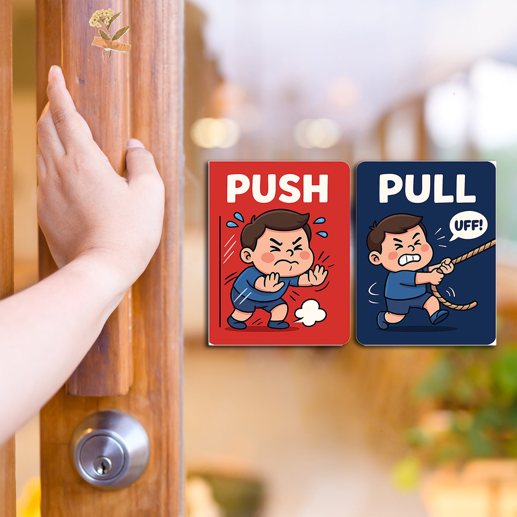 Add some serious fun to your doors with this hilarious Push & Pull Door Sticker Set featuring an angry cartoon boy! On one side, the boy struggles to push with puffed cheeks and flying sweat, while on the other, he fiercely pulls a rope with a big “UFF!” expression. This premium sticker set is perfect for cafes, salons, classrooms, gyms, or even kids’ rooms where you want clear yet humorous door signage. Made with waterproof vinyl and bold colors, these stickers are long-lasting, peel-proof, and add quirky energy to any entrance!