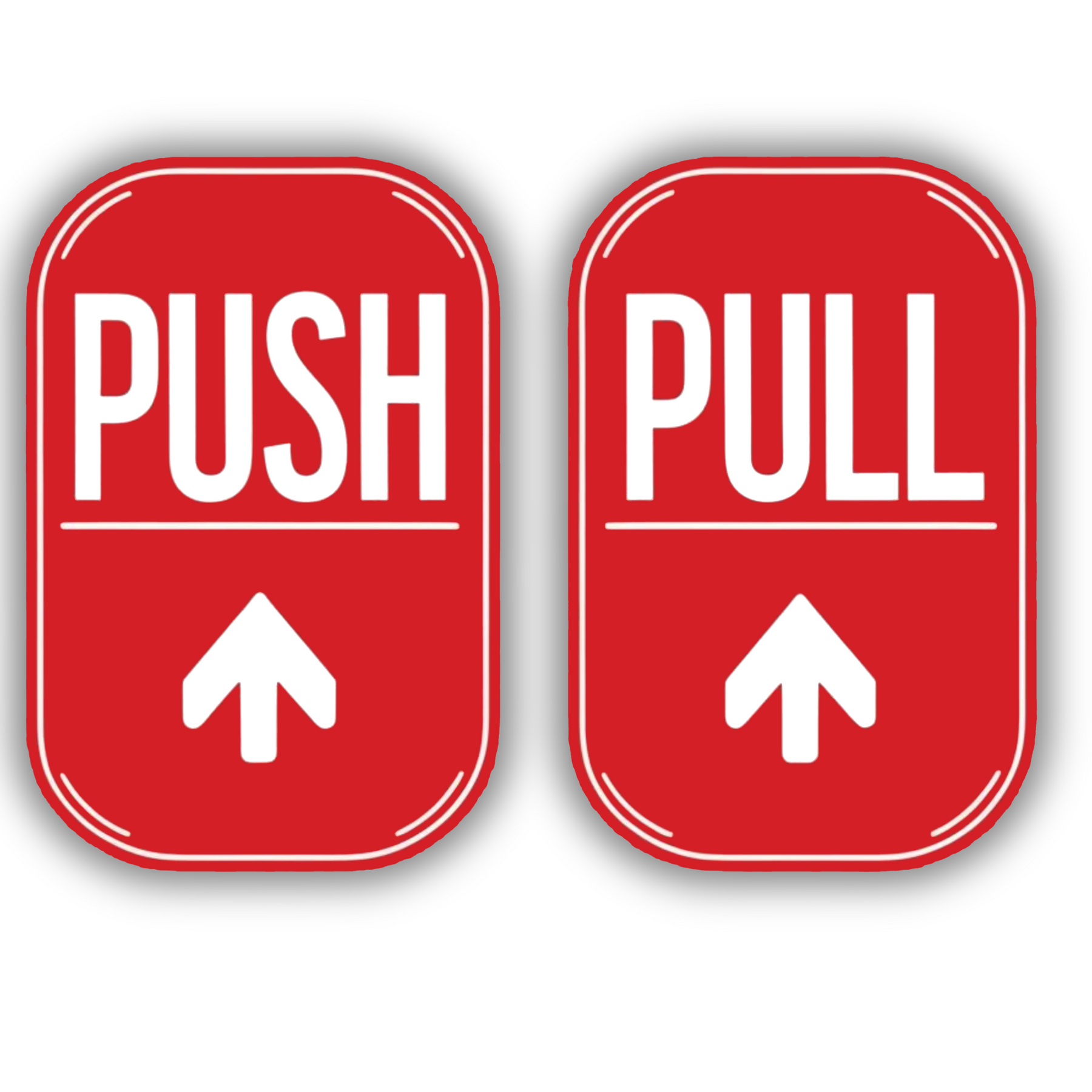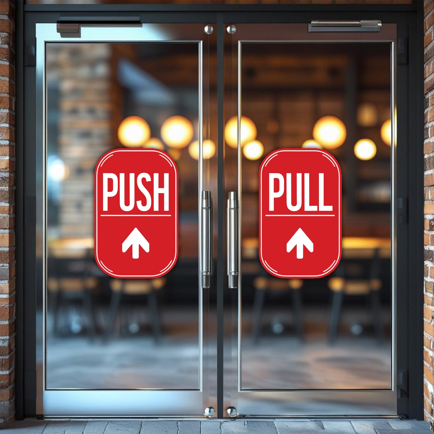 Make entry and exit easy with Stixy's clean and clear Push/Pull Door Sticker Set. Designed in a bold red finish with crisp white arrows and text, these stickers provide instant visual clarity on glass doors, wooden surfaces, and storefronts. Durable, waterproof, and fade-resistant, they're perfect for shops, restaurants, salons, offices, and home entryways. Each pack includes 1 Push and 1 Pull sticker with rounded corners for a neat, professional look. Easy to peel and apply, this non-glow version is ideal for high-visibility in daylight settings.