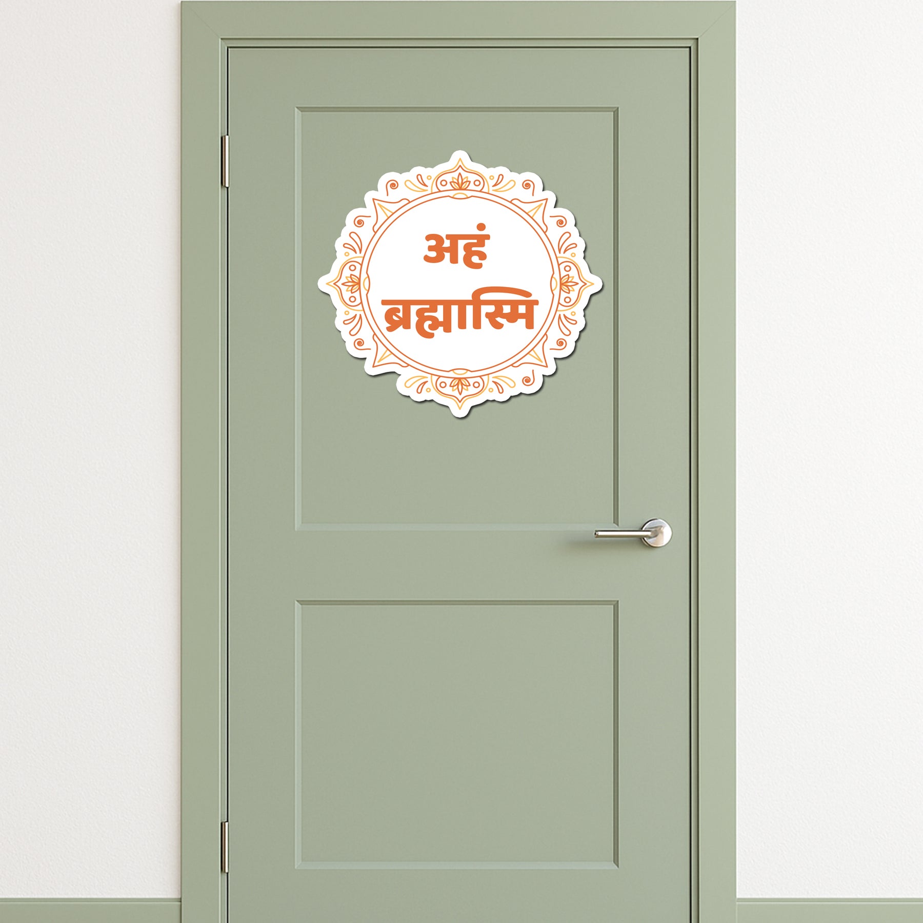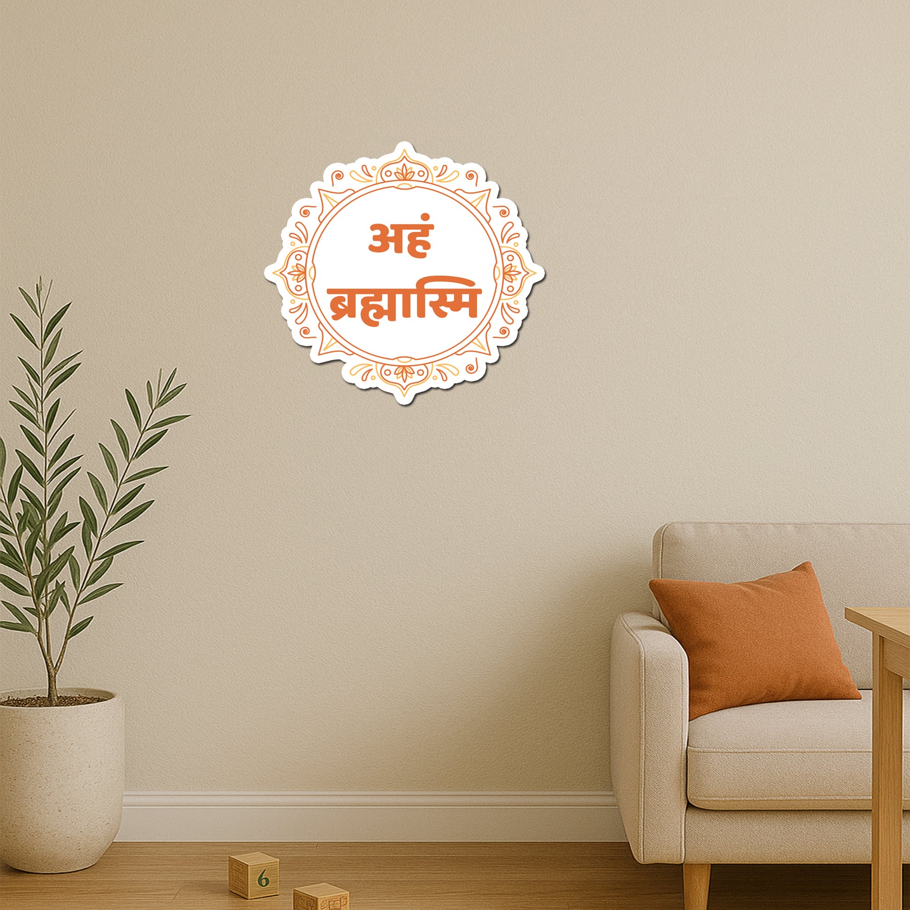 Invoke the ancient wisdom of the Vedas with our “अहं ब्रह्मास्मि” Sanskrit sticker — a sacred declaration meaning “I am Brahman”, symbolizing self-realization and divine oneness. This spiritually empowering design is perfect for yoga rooms, pooja spaces, spiritual study areas, or meditation corners. Printed on high-quality waterproof vinyl, it’s ideal for doors, laptops, journals, temple walls, and even your workspace to serve as a daily reminder of inner divinity and peace. The mandala-inspired orange frame enhances its visual and symbolic appeal.