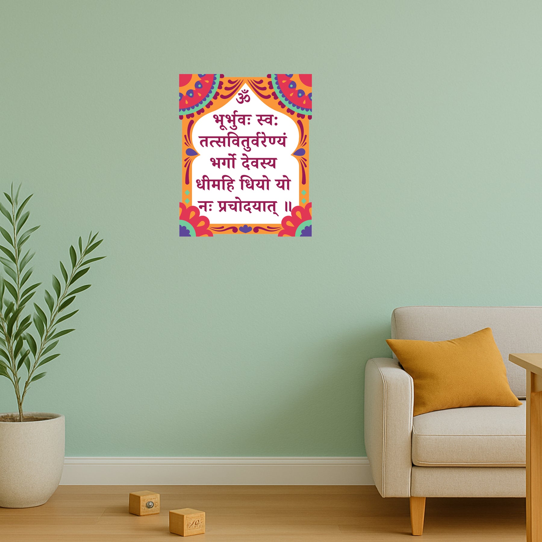 Channel peace, positivity, and divine energy into your surroundings with our Gayatri Mantra Spiritual Wall Sticker, featuring the powerful Vedic chant in elegant Devanagari script surrounded by a vibrant folk-style frame. This devotional vinyl sticker is ideal for temple walls, pooja rooms, home entrances, yoga studios, or car dashboards. Printed on high-quality waterproof and fade-resistant vinyl, it’s easy to peel, durable on wood, glass, tile, or wall surfaces, and adds a sacred aesthetic to any spiritual corner. Whether you're enhancing your personal meditation space or gifting spiritual decor, this mantra radiates calm, clarity, and reverence.