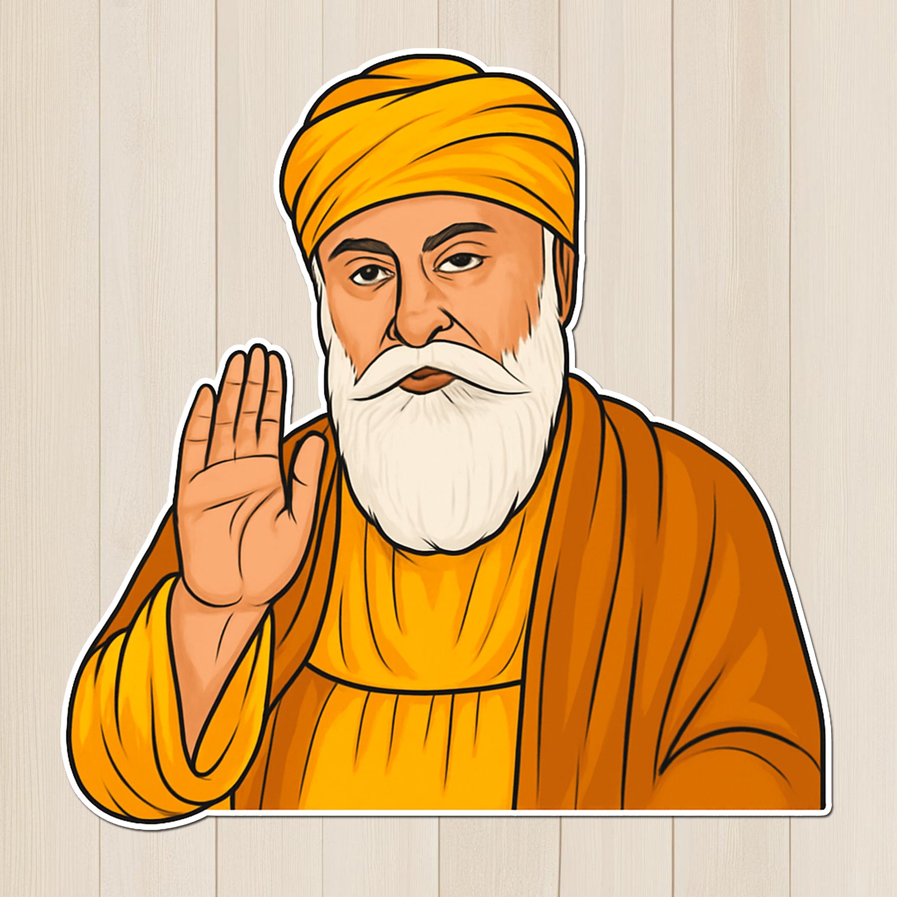 Bring home the serene presence of Guru Nanak Dev Ji with this divine vinyl sticker. Known as the founder of Sikhism and a beacon of compassion, equality, and truth, this sticker serves as a daily reminder of peace and purpose wherever you place it.