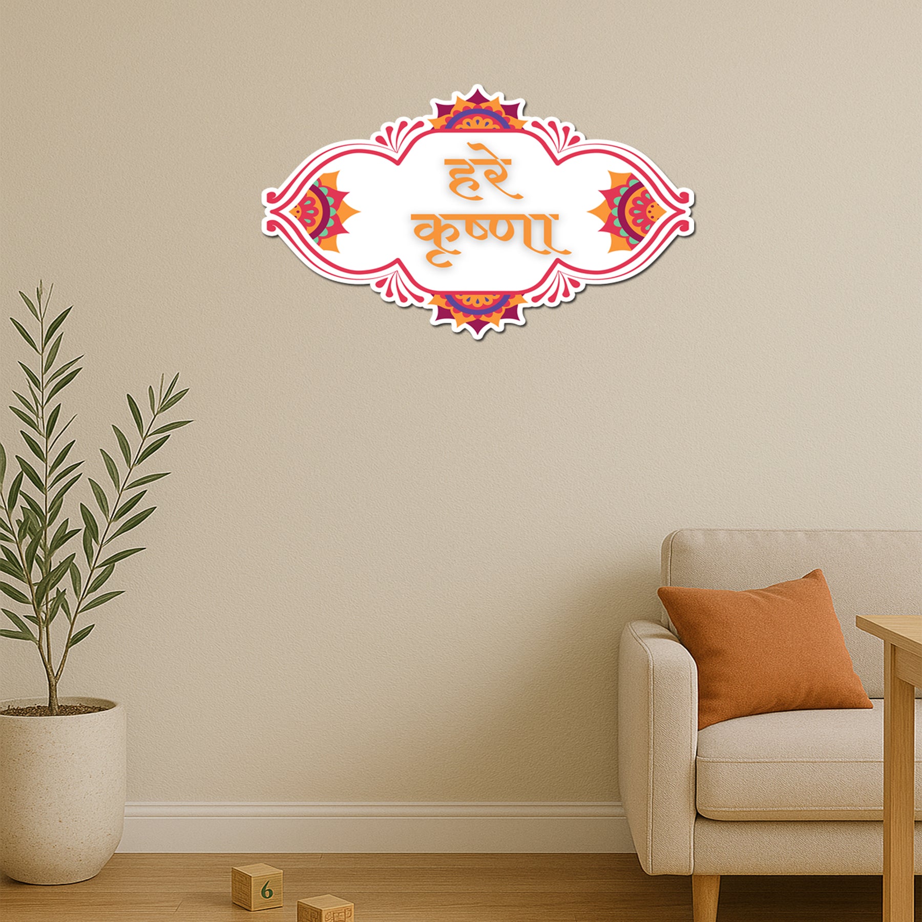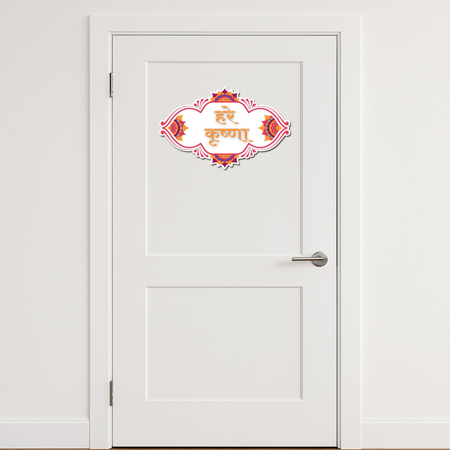 Experience the divine energy of “हरे कृष्णा” with this beautifully designed vinyl sticker featuring intricate mandala-inspired floral patterns and vibrant festive colors. Ideal for Krishna devotees, ISKCON followers, or spiritual souls, this sticker adds a devotional aura to any surface—be it your laptop, car, pooja room, or mandir wall. Printed on high-quality waterproof vinyl, it’s perfect for gifting on Janmashtami or for daily spiritual inspiration. A must-have for anyone who finds peace in chanting the holy name of Lord Krishna.