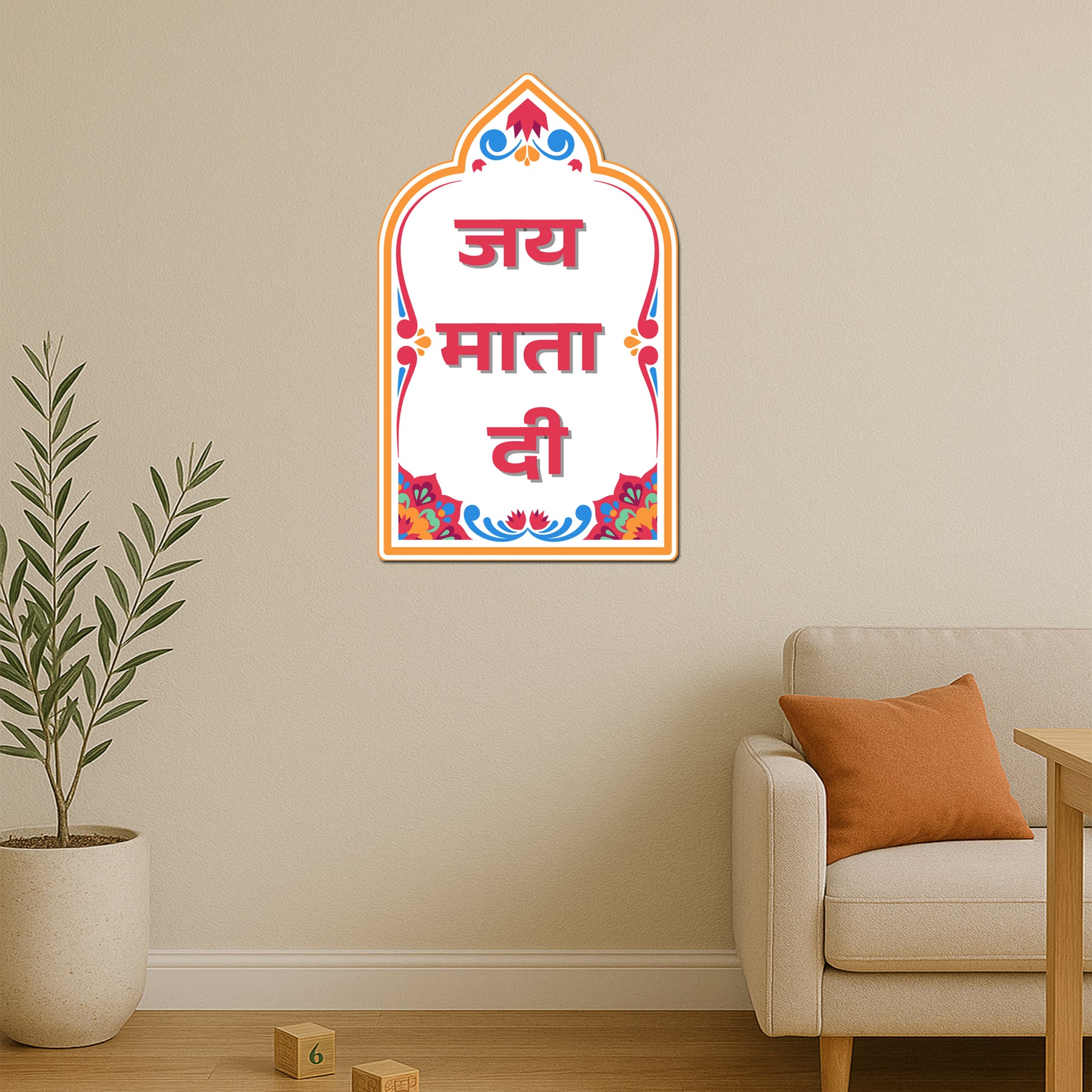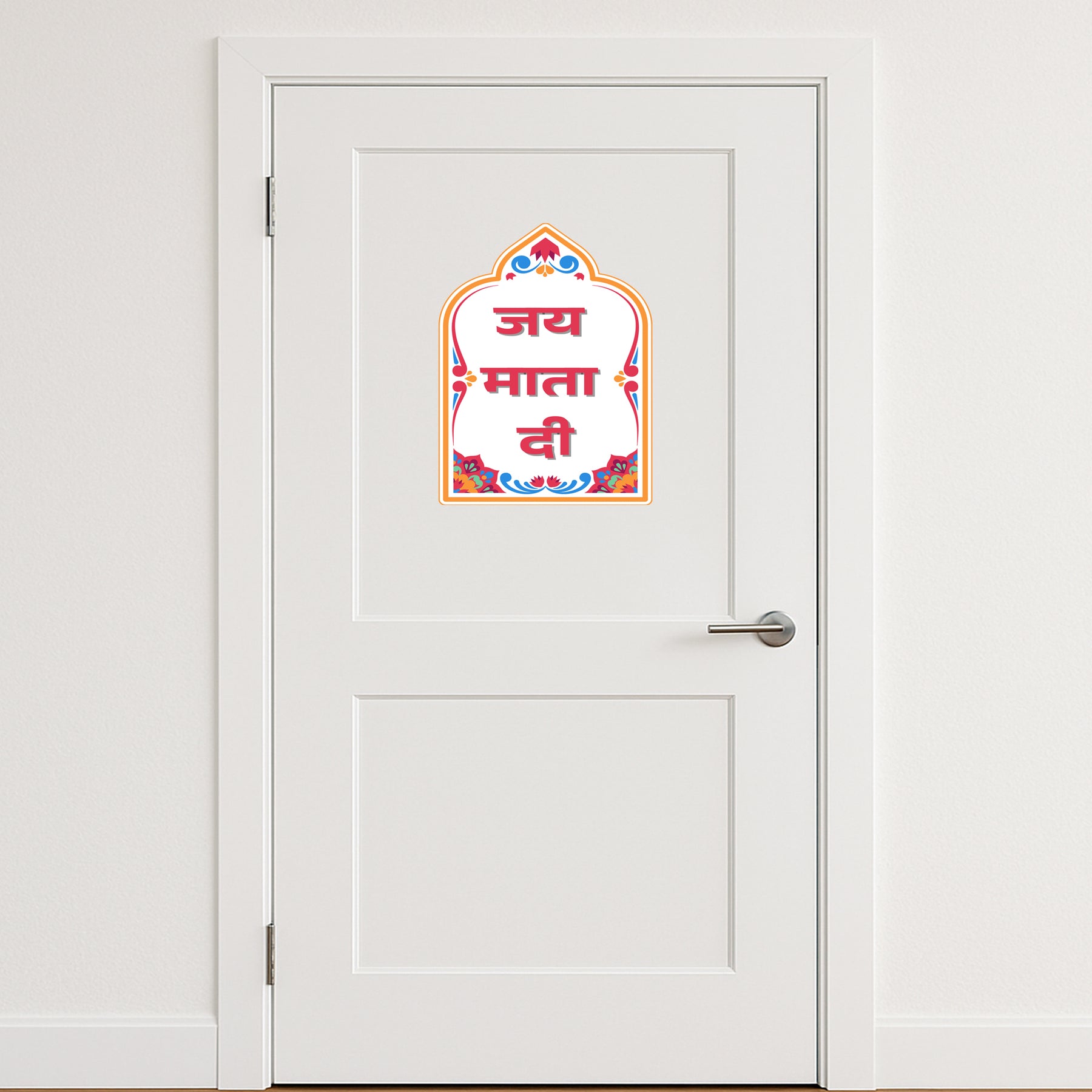 Celebrate divine feminine power with our “जय माता दी” Vinyl Sticker, designed in vibrant temple-style art — a powerful tribute to Maa Durga and the blessings of Shakti. This devotional sticker is ideal for mandir walls, pooja rooms, vehicle dashboards, entrances, or Navratri décor. Crafted from waterproof and fade-resistant vinyl, it's easy to apply on wood, glass, tile, or metal, adding a spiritual and festive aura to any space. Whether it’s a daily prayer or festival decoration, this sticker honors strength, courage, and blessings from Mata Rani.