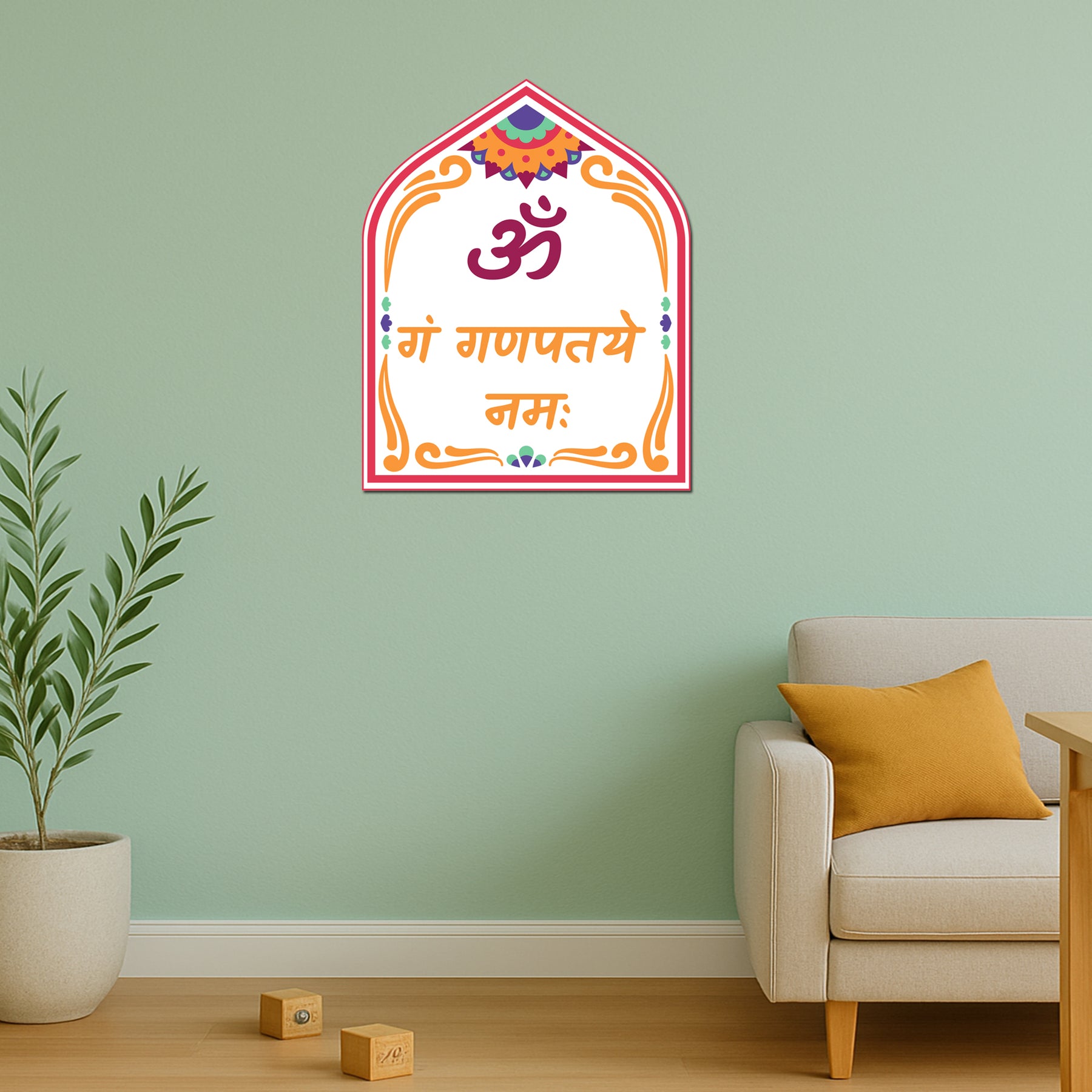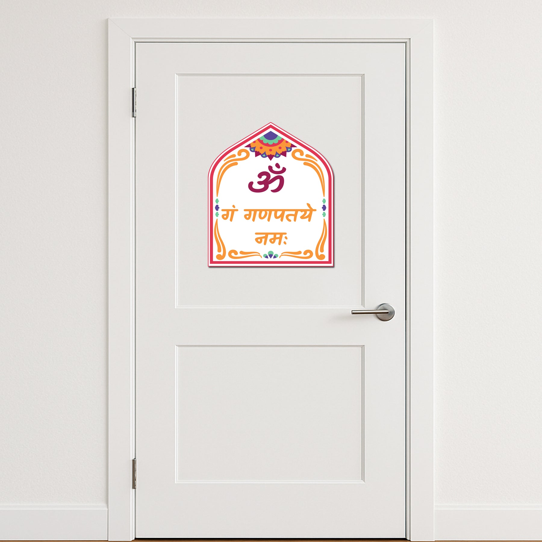Invite the blessings of Lord Ganesha with our “ॐ गं गणपतये नमः” Vinyl Sticker, featuring the sacred Sanskrit mantra in a vibrant temple-style design. This spiritual sticker is perfect for home entrances, mandir walls, car dashboards, or work desks — especially during new ventures, festivals, or daily prayer rituals. Printed on waterproof, fade-resistant vinyl, it adheres smoothly to glass, wood, tile, and walls. Whether you're performing Ganesh puja or adding a sacred aura to your space, this sticker brings divine protection, success, and positivity wherever placed.