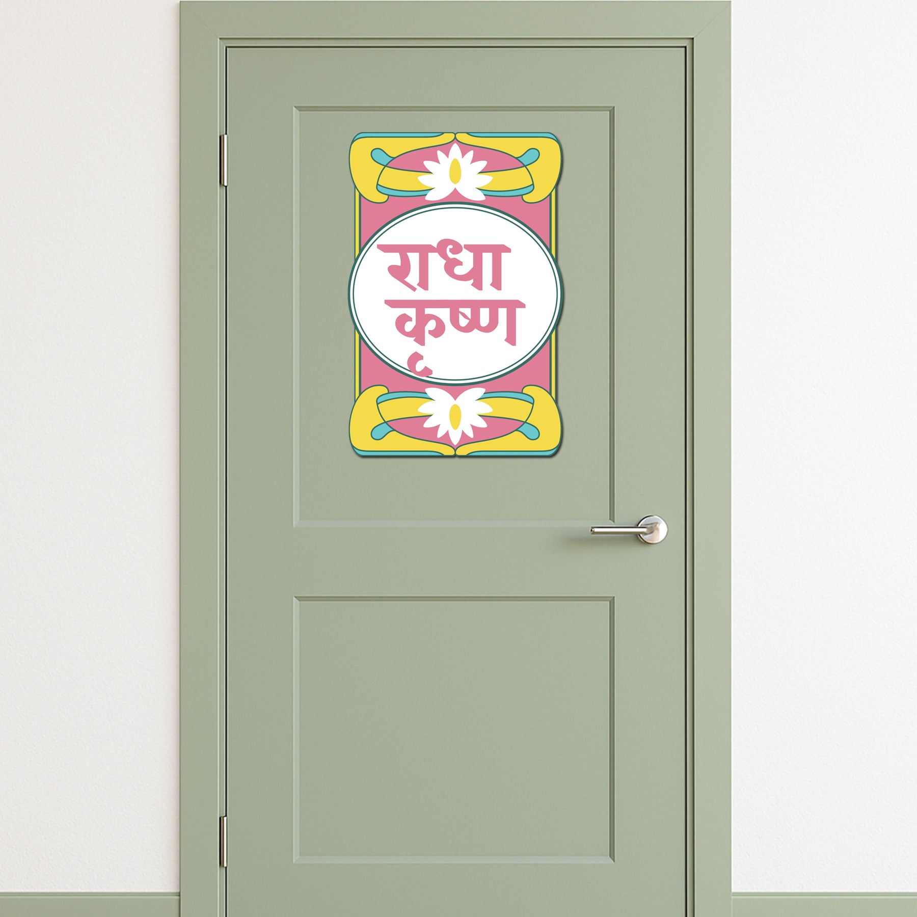 Embrace divine love and spiritual elegance with our “राधा कृष्ण” Vinyl Sticker, designed with soft pink typography framed in a lotus-petal border inspired by sacred romance and balance. Ideal for temple walls, meditation corners, home mandirs, or as a beautiful spiritual gift for anniversaries, weddings, or Karwa Chauth. Printed on waterproof, fade-resistant vinyl, it adheres smoothly to glass, wood, tiles, or any wall — bringing the eternal bond of Radha and Krishna into your personal sacred space.