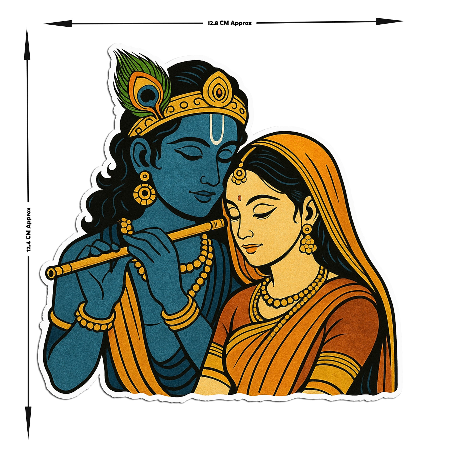 Let the melody of divine love play on! This vibrant folk-style Radha Krishna sticker captures the eternal connection through bold Indian line art and earthy tones. A perfect fusion of devotion and culture, this sticker brings timeless peace to any space.