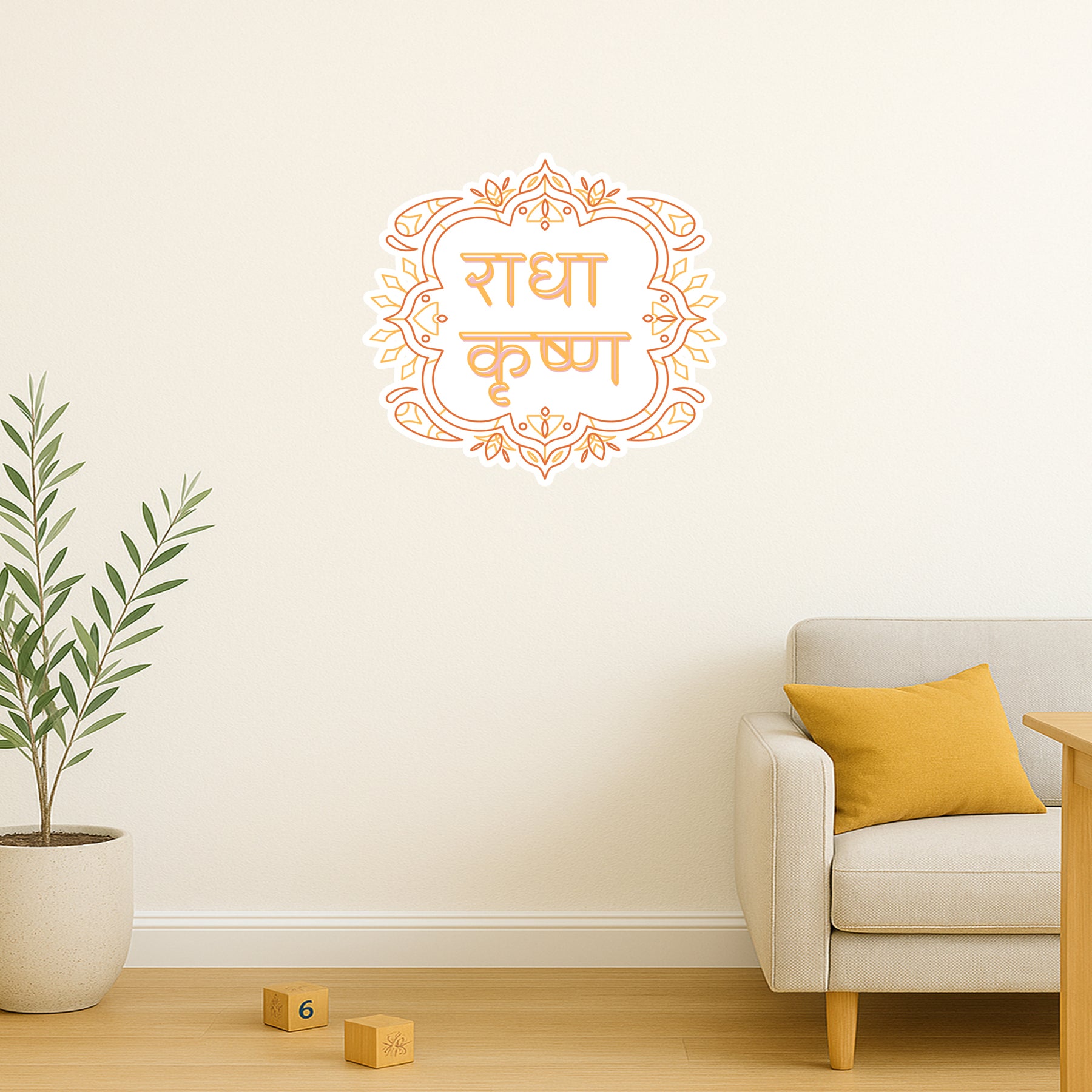 Celebrate the eternal bond of love and divinity with our “राधा कृष्ण” Vinyl Sticker, adorned with a soft gradient script and detailed floral mandala border. Representing balance, purity, and bhakti, this sticker is ideal for pooja rooms, temple walls, meditation areas, or as a meaningful gift. Printed on waterproof, fade-resistant vinyl, it adheres easily to wood, tiles, glass, or walls, making it perfect for both indoor and spiritual décor. Whether you're meditating, praying, or seeking daily blessings, this design brings the soothing presence of Radha Krishna into any sacred space.