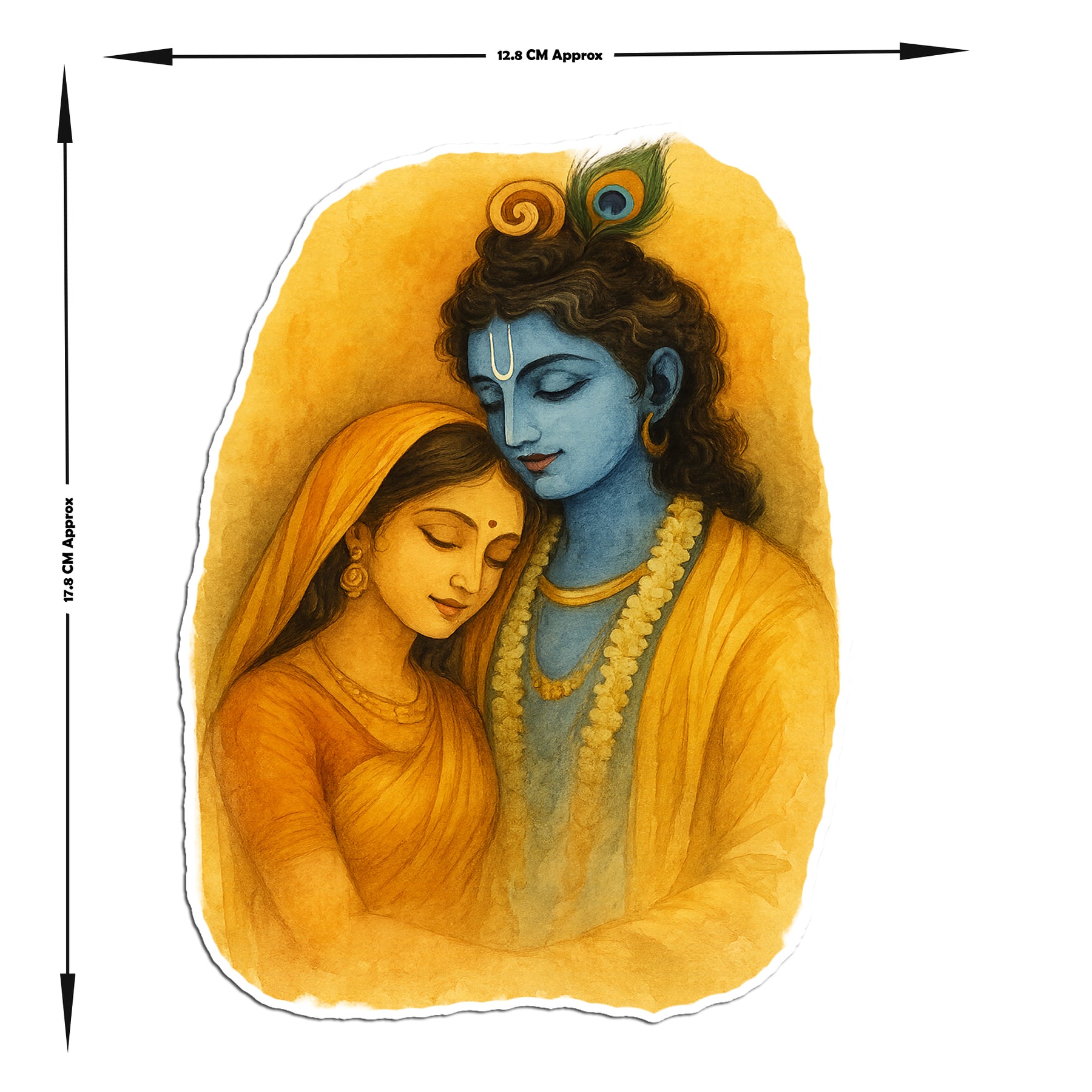 Celebrate the eternal bond of divine love with this enchanting Radha Krishna sticker. Featuring soulful watercolor tones, the sticker radiates harmony, devotion, and artistic grace—perfect for your pooja room, journal, wall, or vehicle.