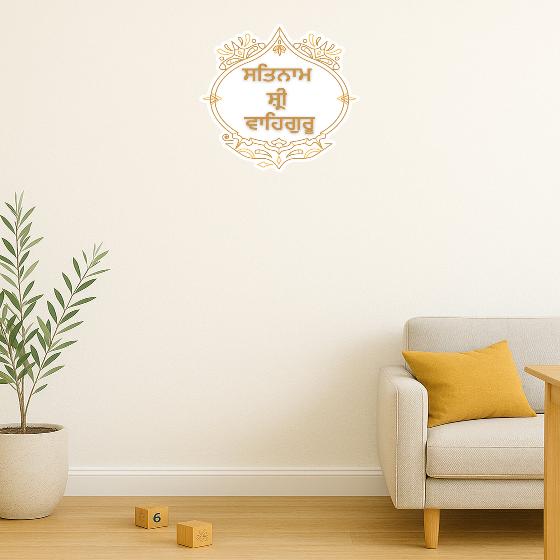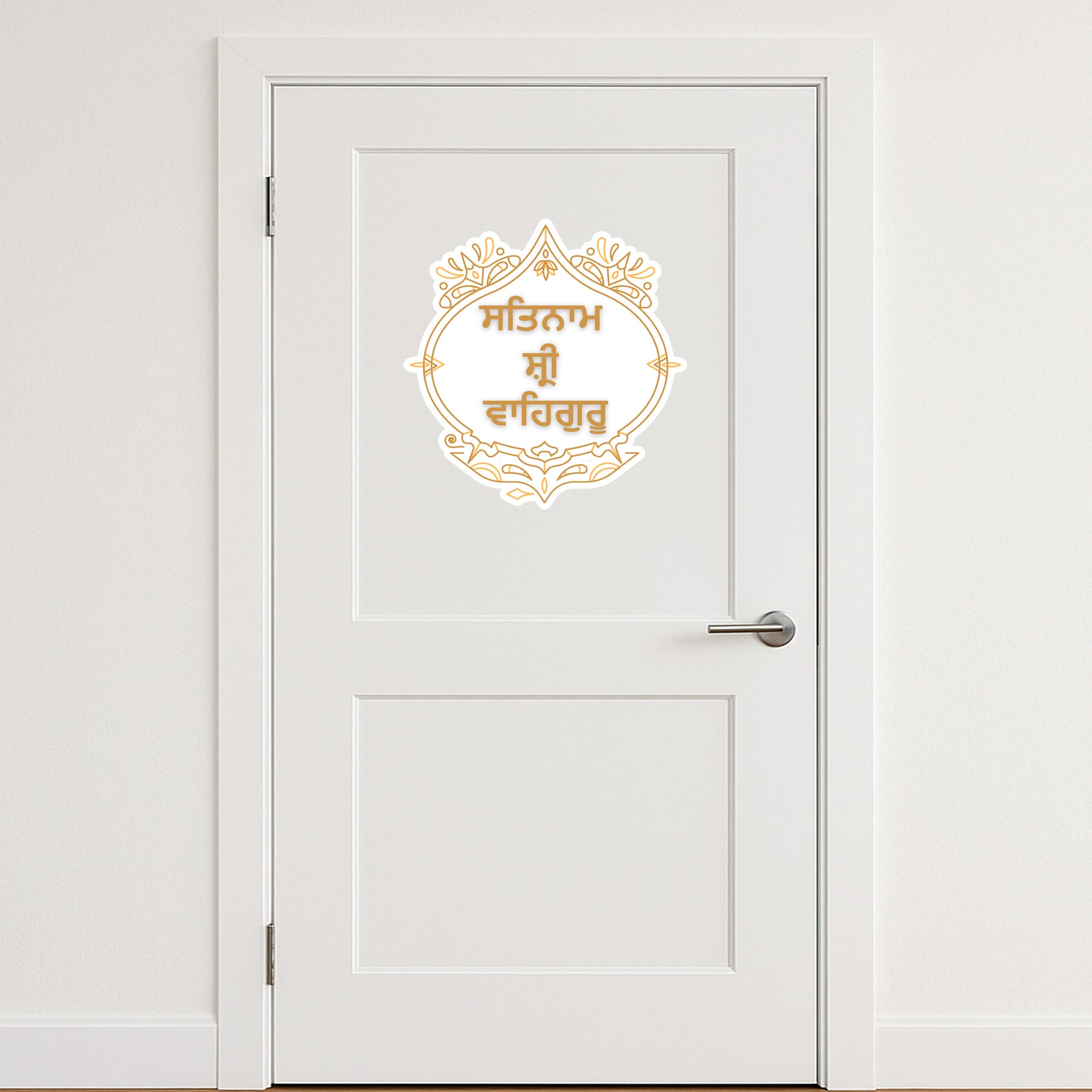 Experience spiritual serenity with our “ਸਤਿਨਾਮ ਸ਼੍ਰੀ ਵਾਹਿਗੁਰੂ” Vinyl Sticker, written in Gurmukhi and framed in a graceful golden line-art design. A sacred mantra in Sikhism, this sticker is perfect for Gurdwara decor, home mandirs, meditation spaces, or car dashboards. Printed on waterproof and fade-resistant vinyl, it adheres smoothly to glass, walls, tiles, or wooden surfaces — adding a divine aesthetic wherever placed. Whether for daily prayer, gifting on Gurpurab, or decorating your peaceful sanctuary, this sticker invites Waheguru’s blessings and divine presence into your life.