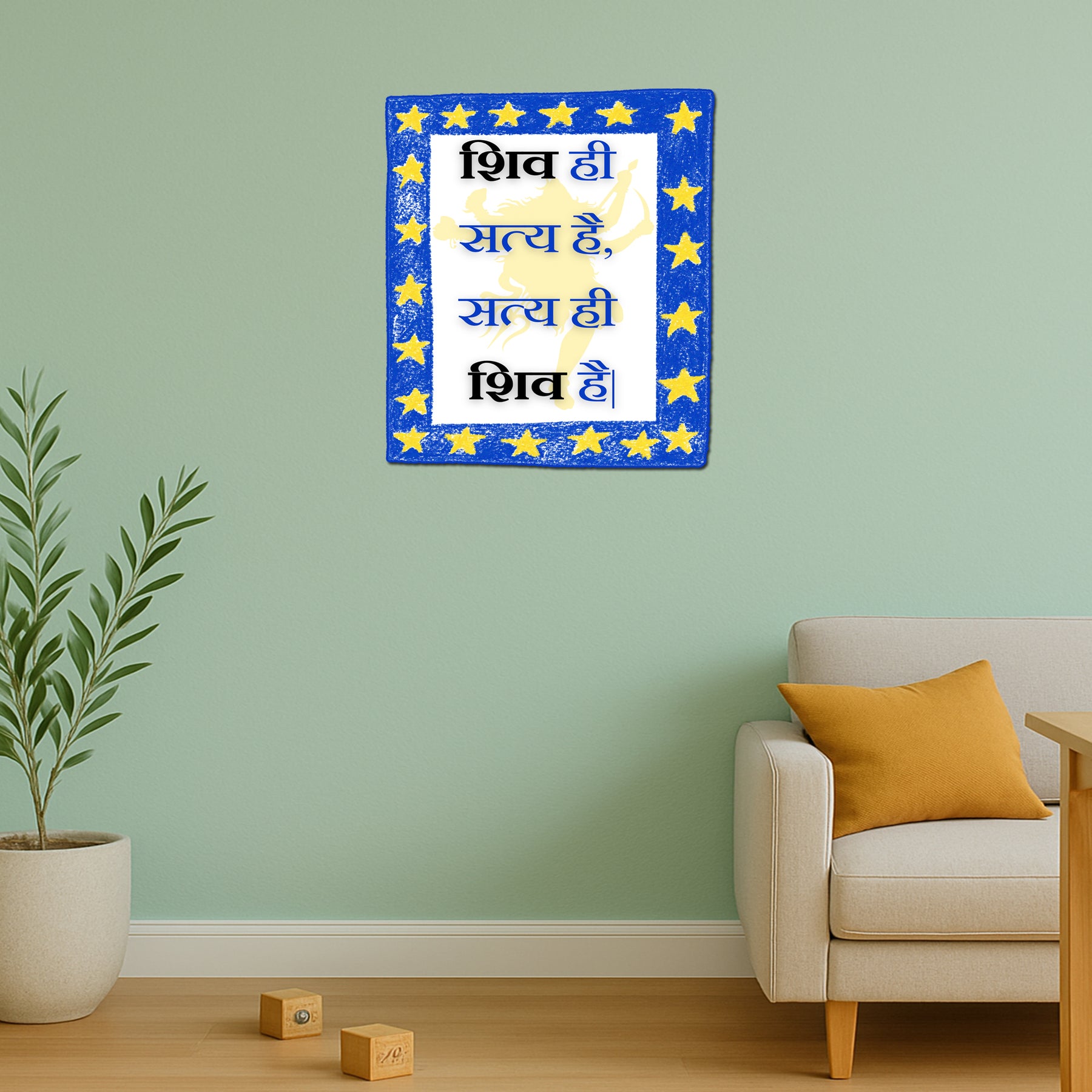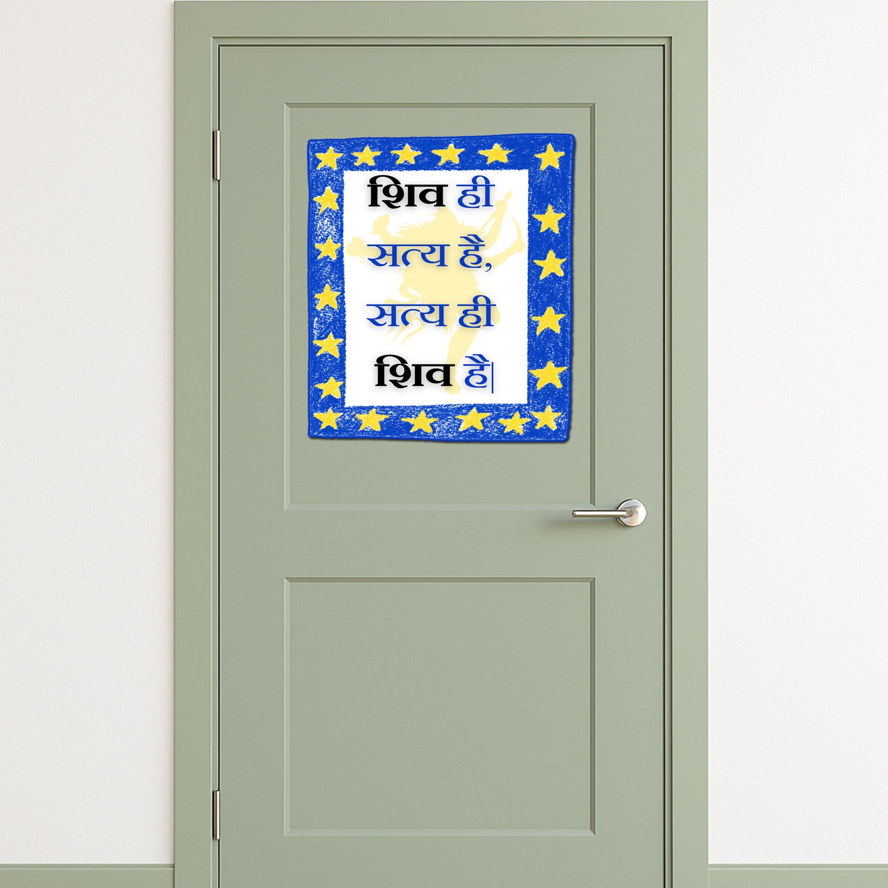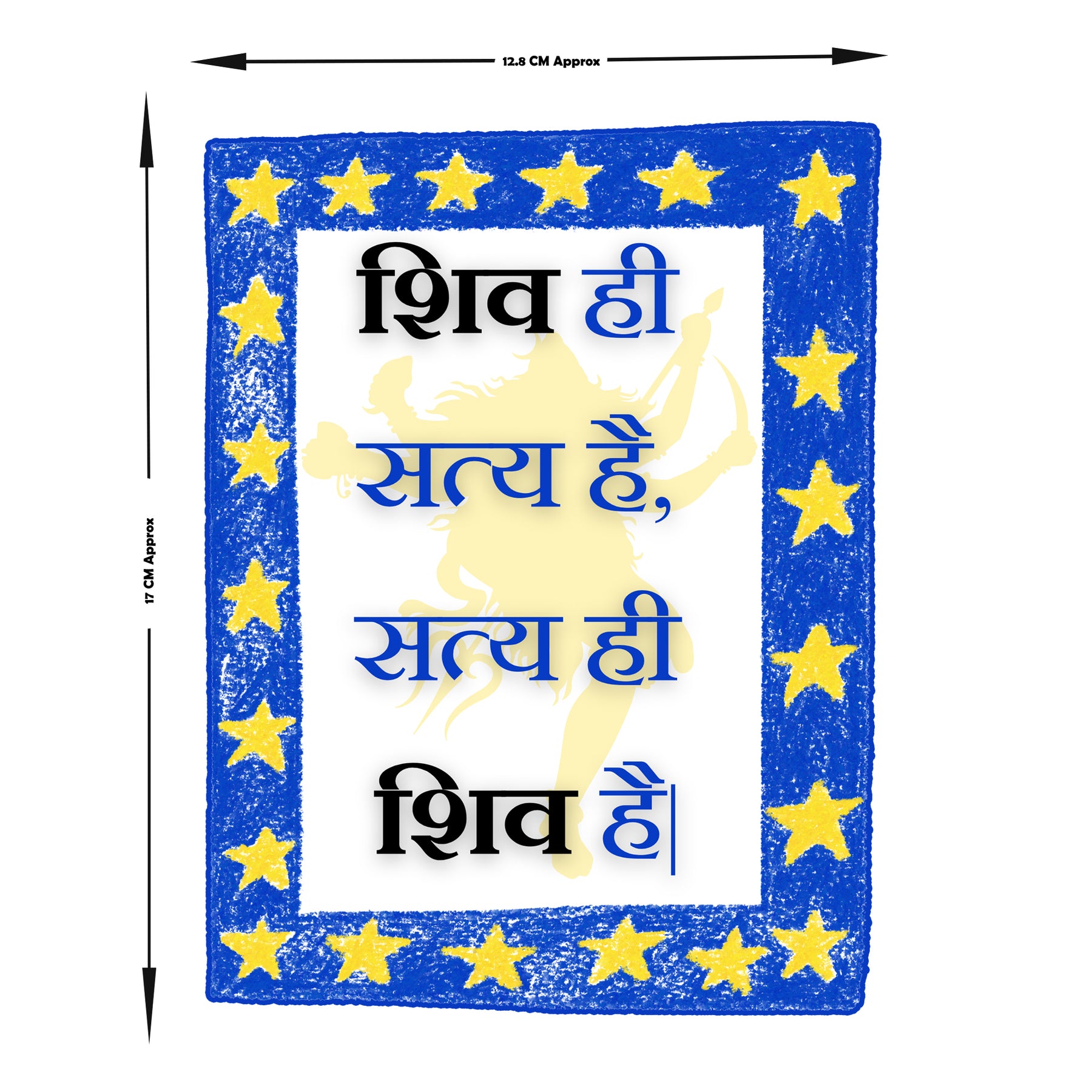 Channel divine energy and truth with this bold “शिव ही सत्य है, सत्य ही शिव है” Hindi quote sticker. Featuring a powerful silhouette of Lord Shiva surrounded by a hand-drawn star border, this design emphasizes the eternal connection between truth and Shiva. Ideal for spiritual seekers, yogis, and meditation lovers, it serves as a daily visual mantra. Made with waterproof vinyl, it’s perfect for pooja rooms, laptops, walls, notebooks, or gift packaging to infuse a space with meaning and aesthetic charm.