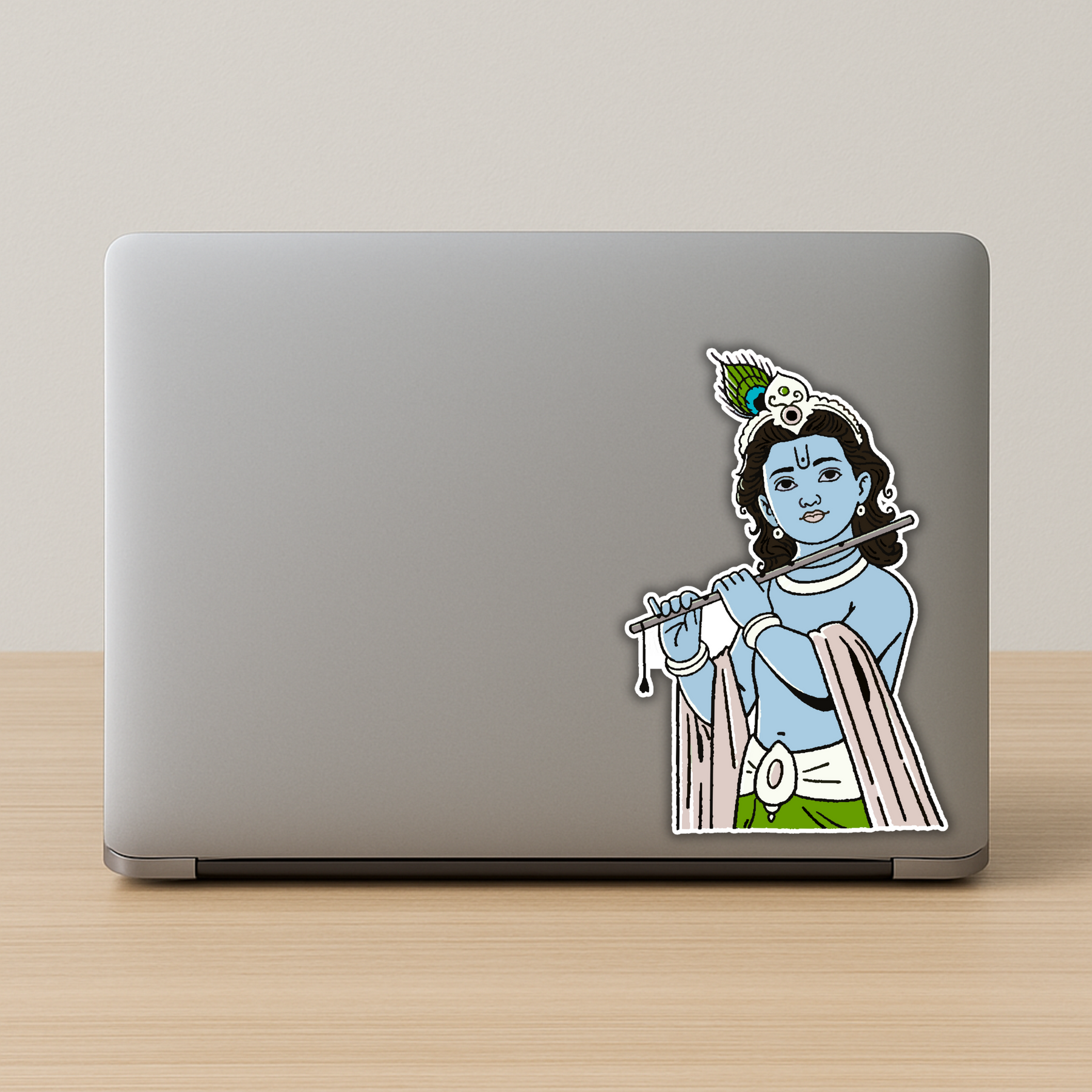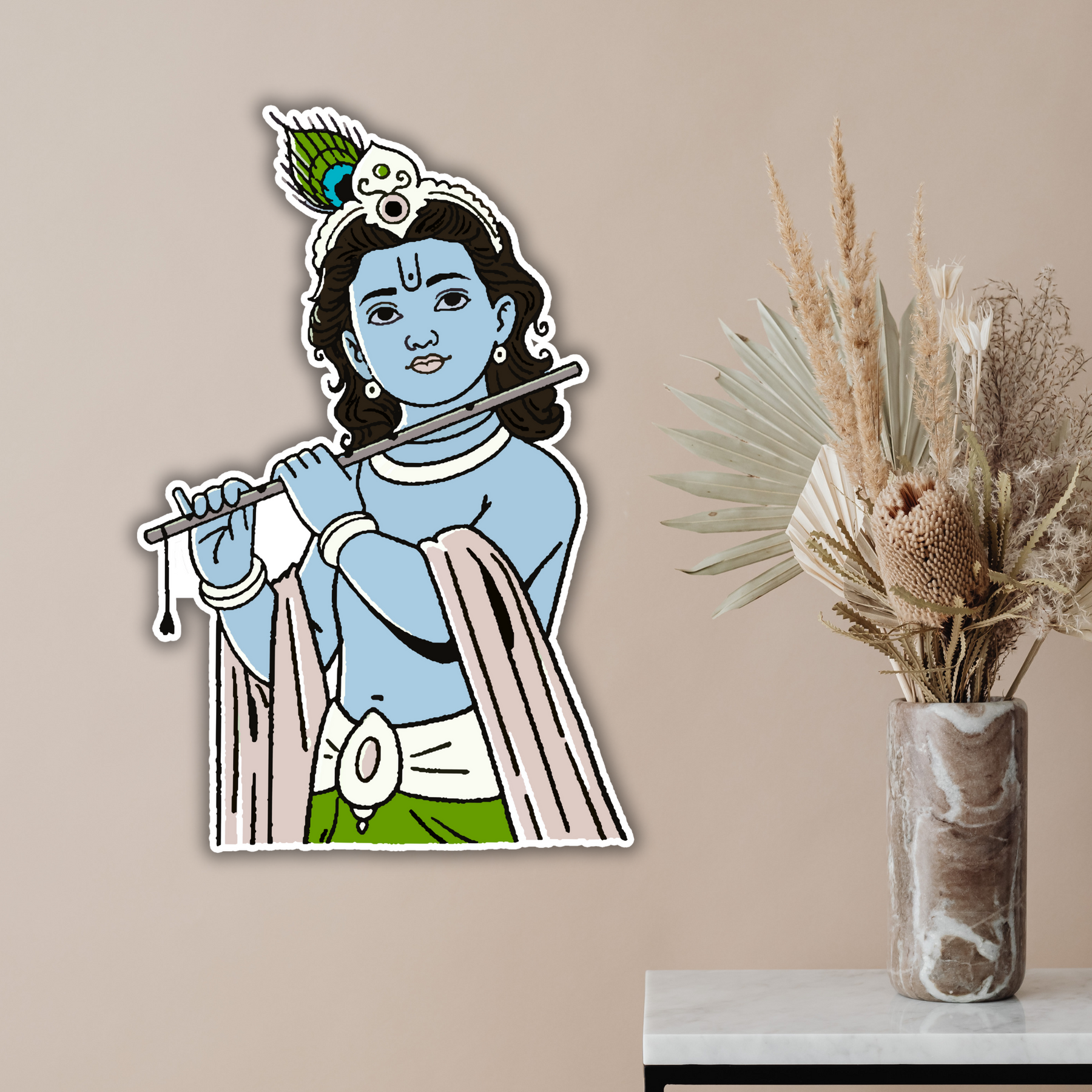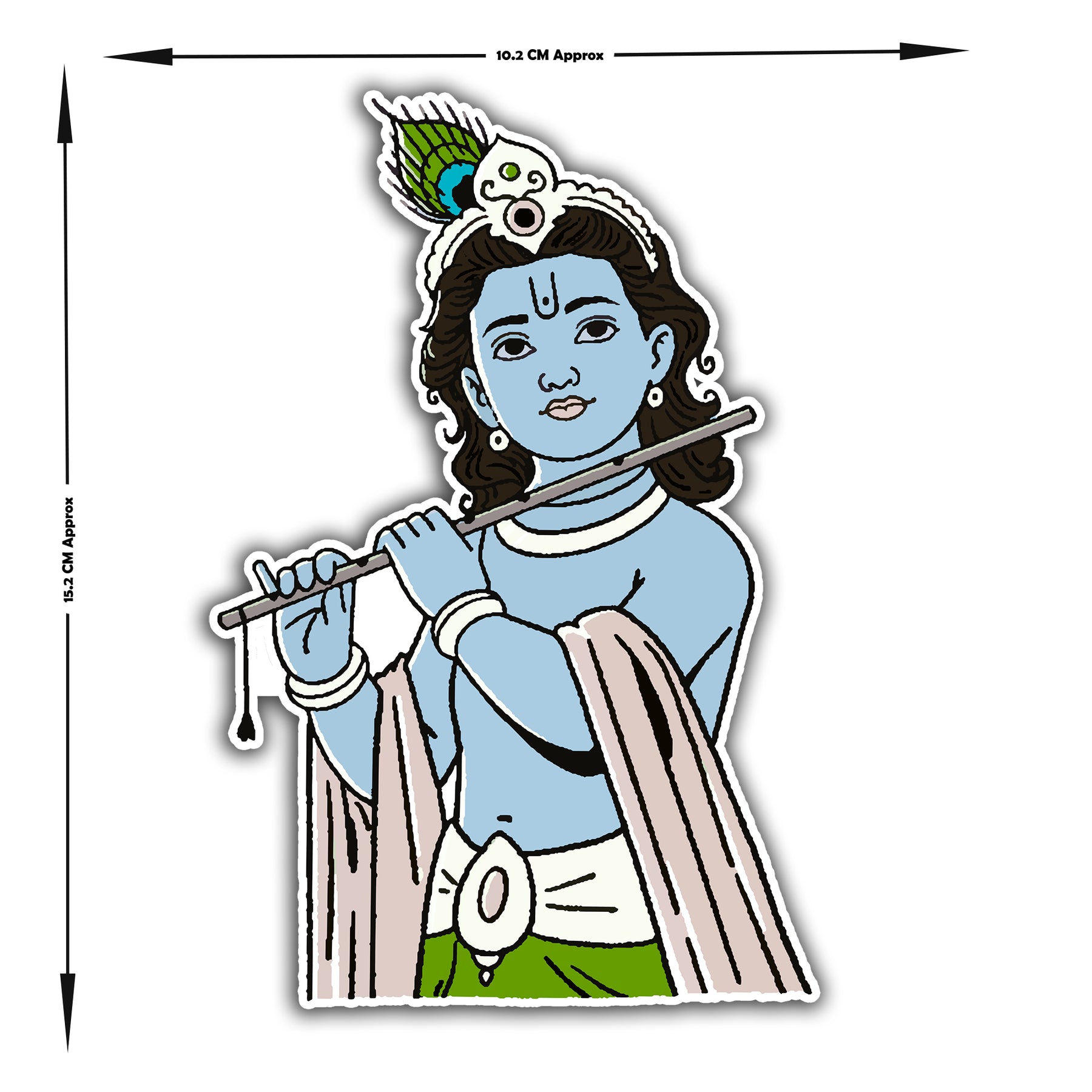 Bring home the divine charm of Lord Krishna with this beautifully illustrated sticker showing him playing the flute, adorned with his iconic peacock feather. The calm expression and traditional detailing make it perfect for pooja room decor, temple walls, or devotional gifting.
