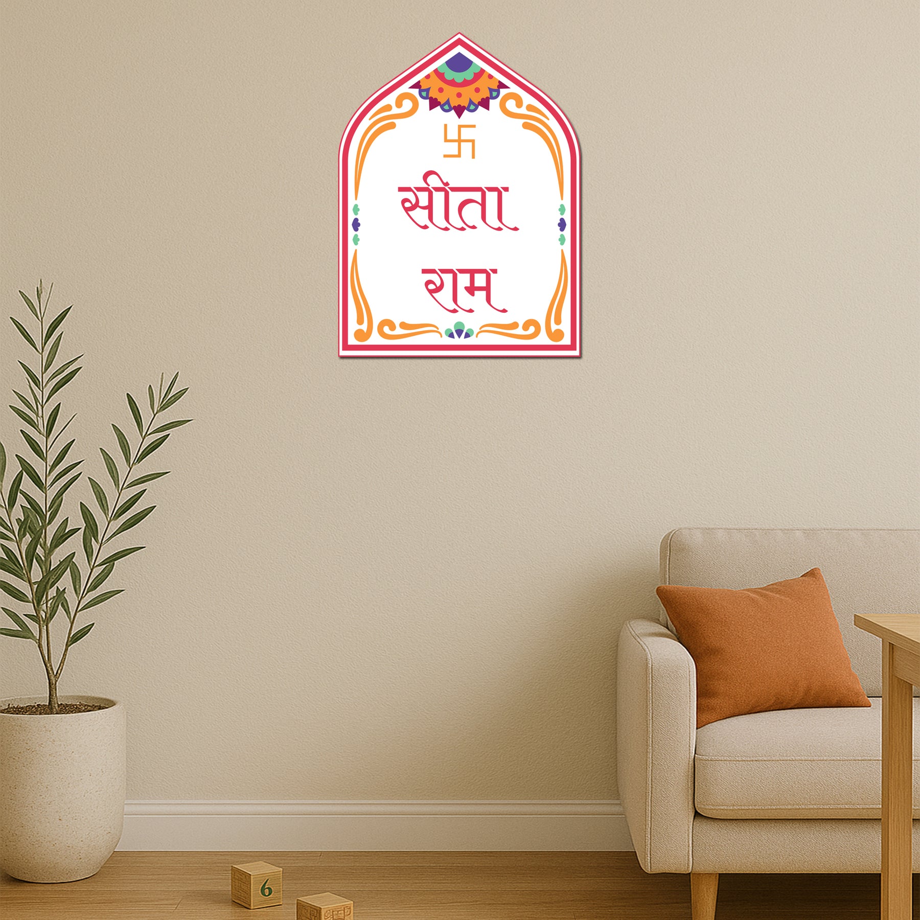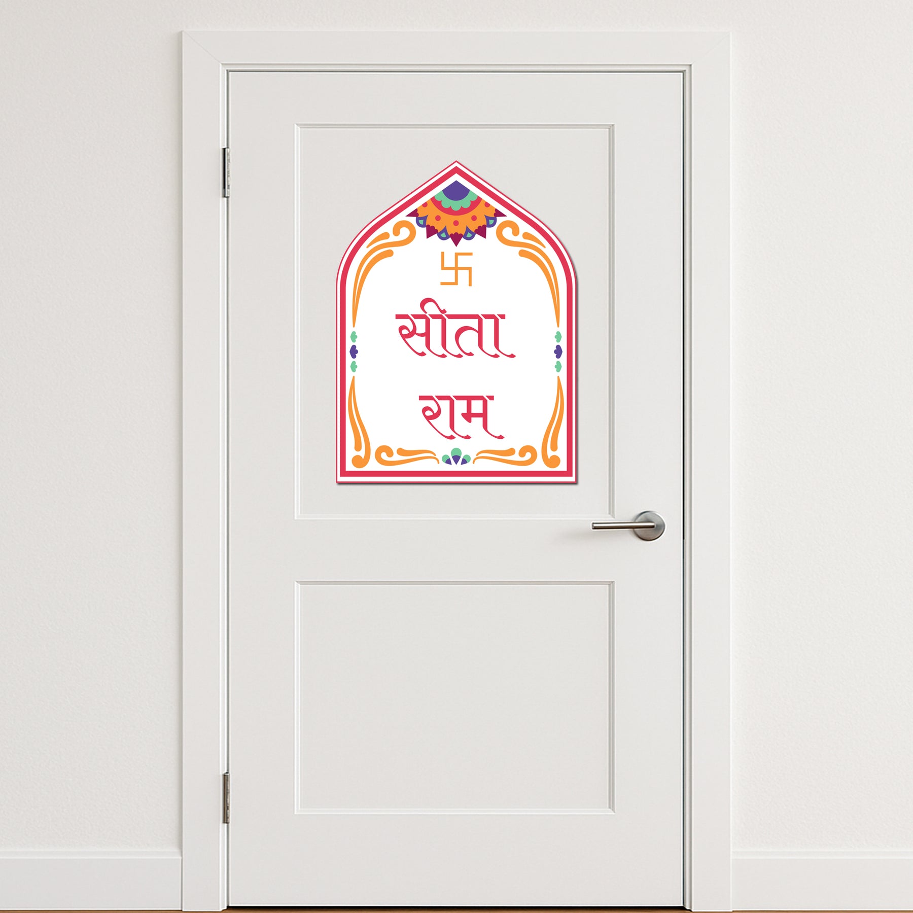 Celebrate divine virtue and love with our “सीता राम” Vinyl Sticker, featuring bold Devanagari script under a vibrant temple arch, crowned by a Swastik symbol of good fortune. Perfect for pooja room walls, temple entrances, vrat thalis, or sacred gifting during Ram Navami, Diwali, or housewarming. Printed on durable waterproof vinyl, this sticker adheres beautifully to painted walls, tiles, glass, wood, and metal surfaces — adding peace, blessings, and elegance to any sacred corner.