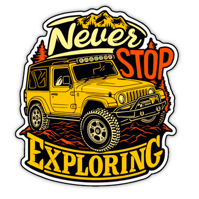 NEVER STOP EXPLORING STICKER – YELLOW JEEP ADVENTURE EDITION