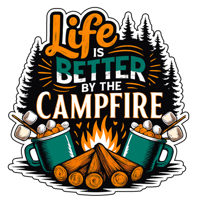 LIFE IS BETTER BY THE CAMPFIRE STICKER – OUTDOOR ADVENTURE SERIES