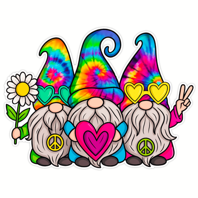 TIE-DYE GNOMES STICKER – PEACE, LOVE & HAPPINESS SERIES