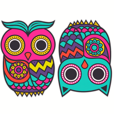 COLORFUL OWL PAIR STICKER SET – VIBRANT ART SERIES