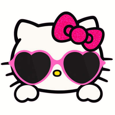 CUTE KITTY WITH HEART SUNGLASSES STICKER – PINK GLITTER EDITION
